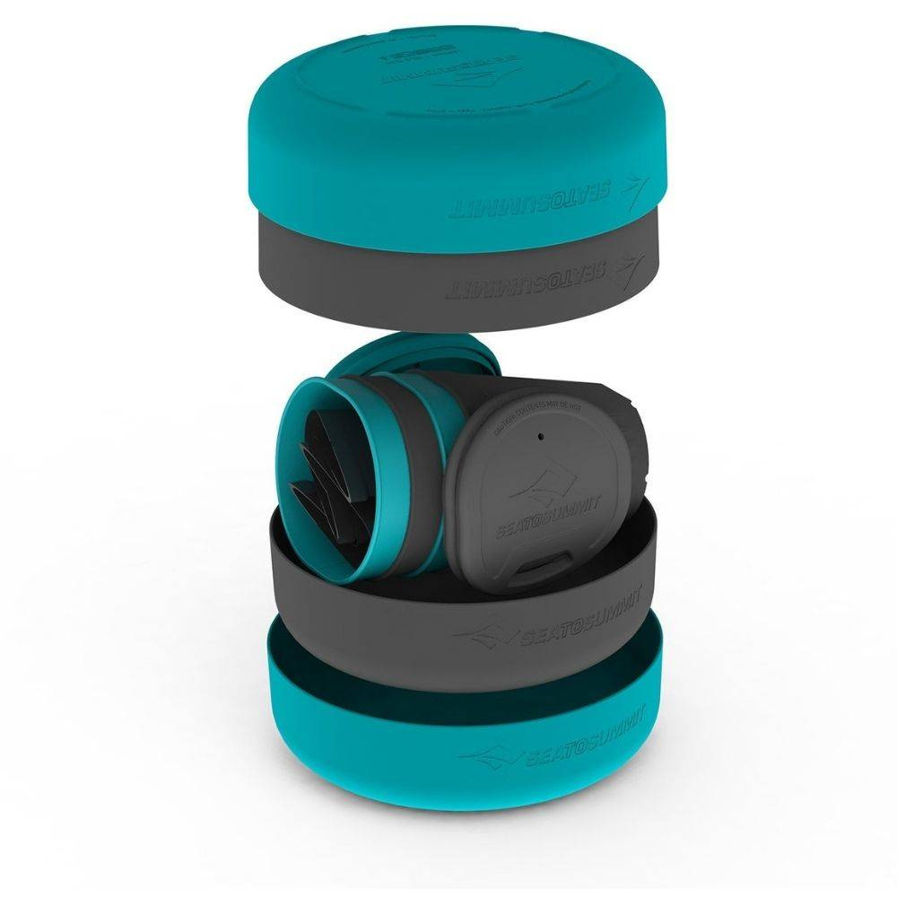 Delta LightCamp Set 4.4 Sea To Summit to zestaw ośmiu naczyń składający się z czterech izolacyjnych kubków DeltaLight Insul Mug o pojemności 350 ml oraz czterech misek DeltaLight Bowl - dwie o pojemności 900 ml, dwie o pojemności 1 l. Naczynia są niezwykle wygodne w transporcie i przechowywaniu, dzięki niewątpliwej zalecie, jaką jest ich kompaktowość. Do zestawu dołączono etui podnoszące komfort użytkowania.