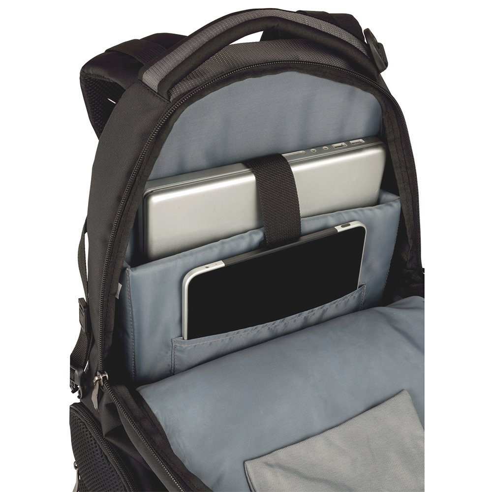 Plecak Transit to połączenie sportowego stylu z biznesową funkcjonalnością – doskonały towarzysz podczas dni obfitujących w wyjazdy służbowe. Plecak posiada organizer na niezbędne akcesoria pozwalający zachować porządek i zapewniający łatwy dostęp do przewodów, ładowarek i wizytówek. Plecak ma kieszeń szybkiego dostępu do przechowywania przedmiotów, po które sięga się najczęściej. Komfortowe szelki dostosowują się do kształtu ramion. Boczne kieszenie zamykane są na suwak. Pas do mocowania Pass-Thru wsuwa się na rączkę bagażu na kółkach, aby zwiększyć komfort podróży z kilkoma torbami