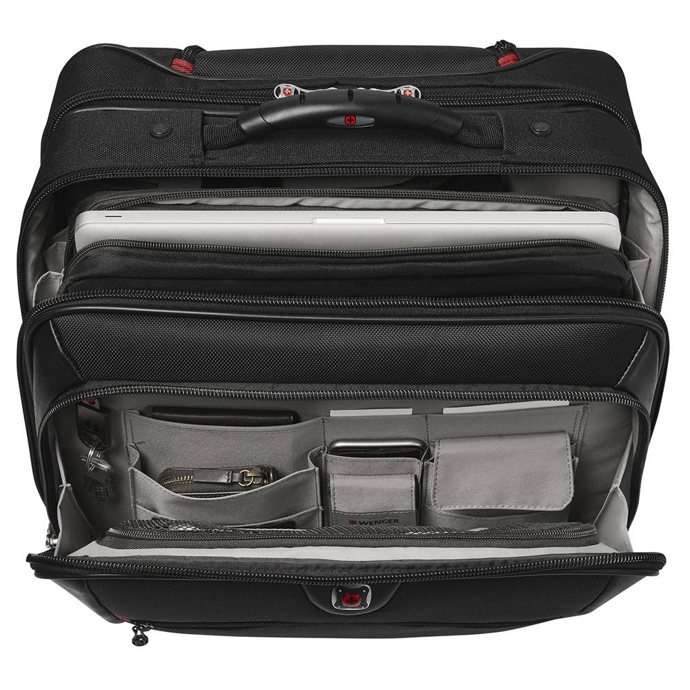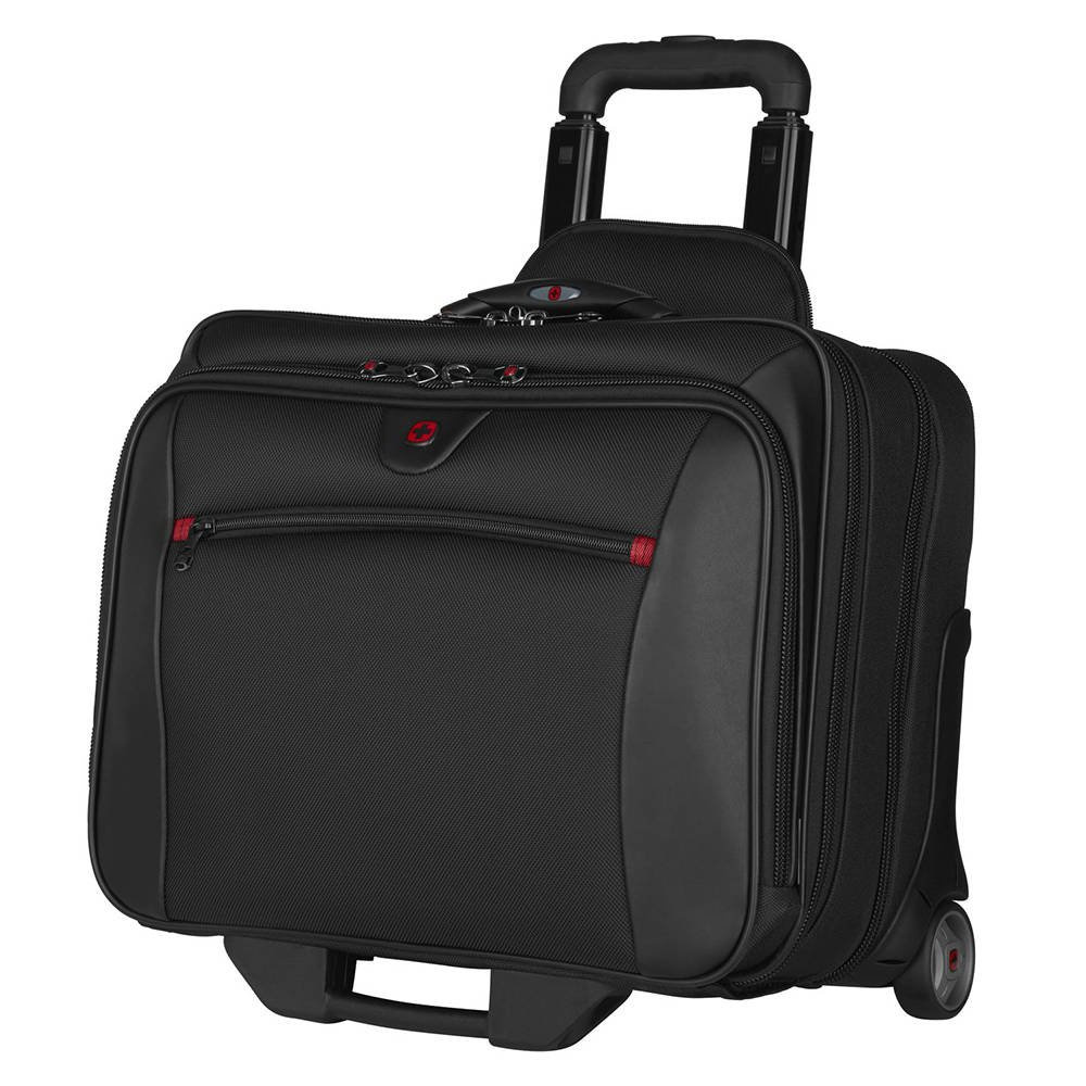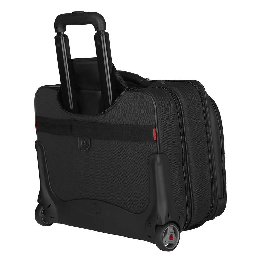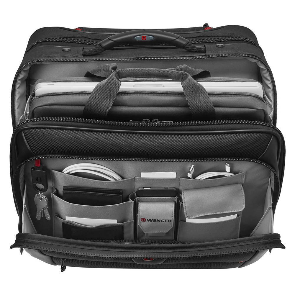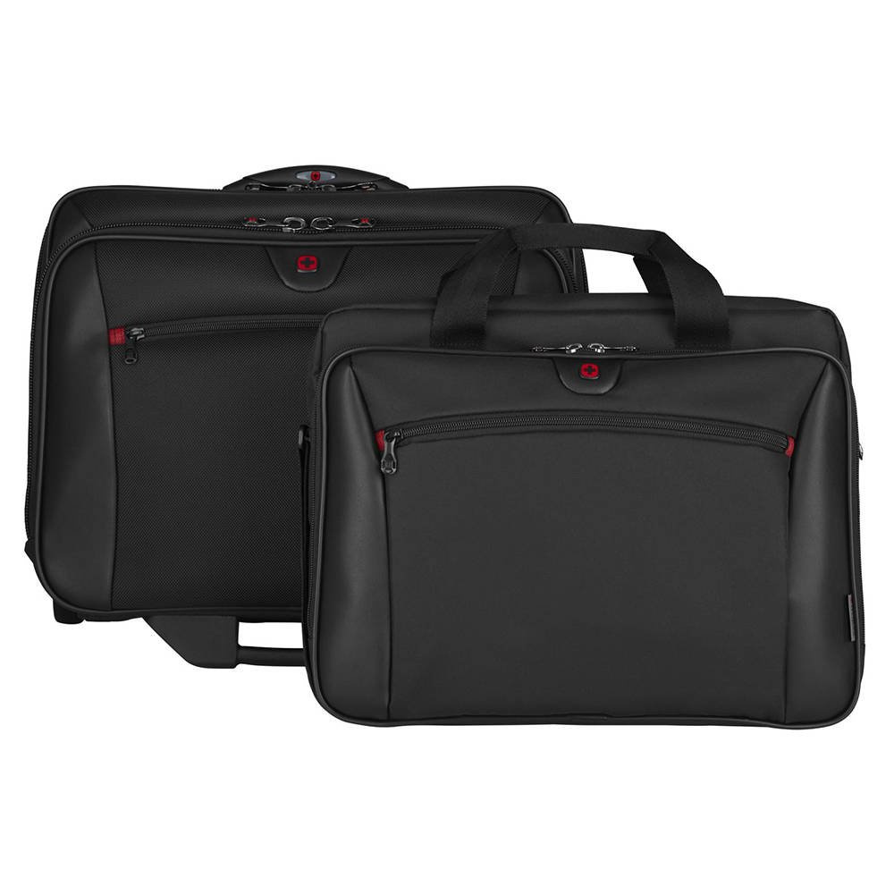 Dwuczęściowy zestaw złożony z torby na kółkach z komorą do spakowania odzieży na jednodniowy wyjazd i pasującym do niej etui na laptopa. Zestaw idealny na służbowe wyjazdy i delegacje. Torba posiada organizer na niezbędne akcesoria pozwalający zachować porządek i zapewniający łatwy dostęp do przewodów, ładowarek i wizytówek. Kółka torby zapewniają płynność jazdy i pozwalają na manewrowania na ostrych zakrętach i wąskich przejściach. Walizka zawiera komorę do spakowania odzieży na jednodniowy wyjazd. Rozszerzana przegródka na teczki zapewnia organizację dokumentów. Pasujące do torby, wyjmowane etui na laptopa, chroni laptopa o przekątnej ekranu do 15,4". W razie potrzeby komorę na laptopa można zabezpieczyć blokowanymi suwakami. Pas do mocowania Pass-Thru pozwala na przytwierdzenie torby do innego bagażu.