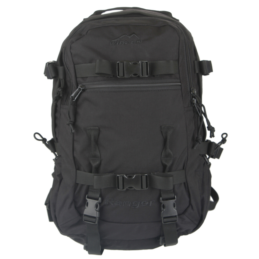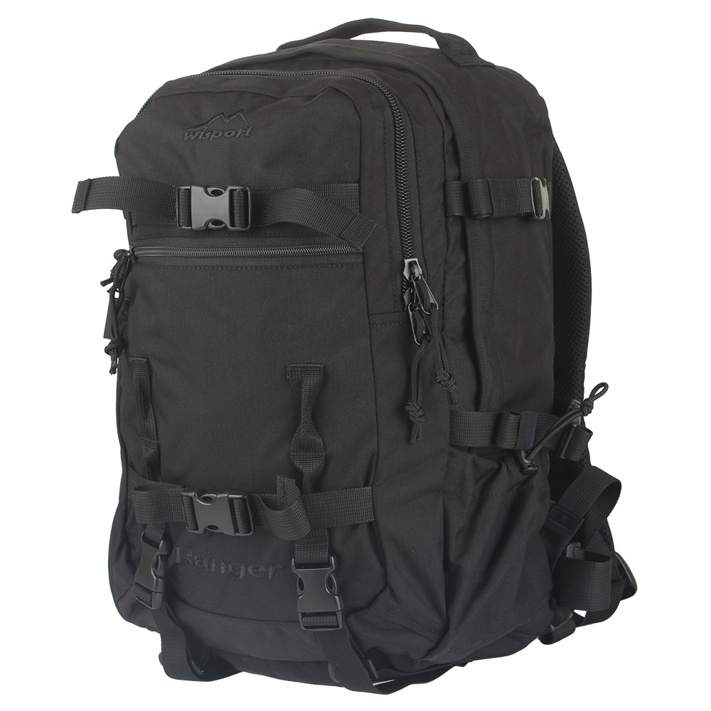30-litrowy trwały plecak turystyczny Ranger Wisport wyposażony w kieszeń na 15-calowego laptopa, pokrowiec przeciwdeszczowy i taśmy do mocowania dodatkowego ekwipunku.