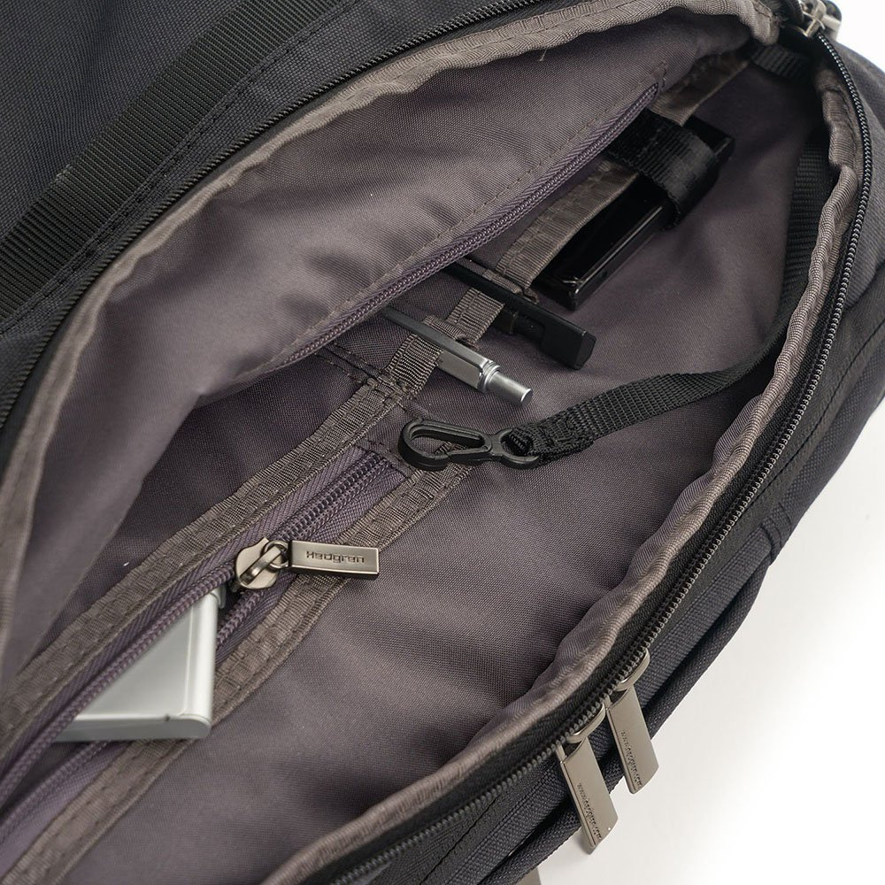 Torba Hedgren Focal to również sposób na praktyczny bagaż podręczny. Zintegrowany pas daje możliwość nałożenia jej na wysuwaną rączkę od walizki. Trzy komory pomieszczą najpotrzebniejszy bagaż, a także laptopa o wielkości do 14 cala. Frontowa kieszeń z organizerem to idealna przestrzeń do przechowywania drobnych akcesoriów biurowych.