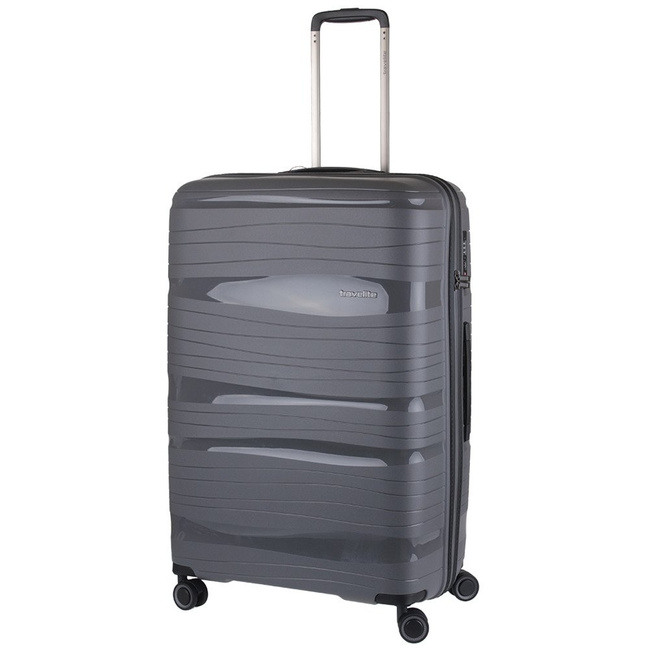 Lekka walizka wykonana z polipropylenu, wyposażona w wodoodporne suwaki.