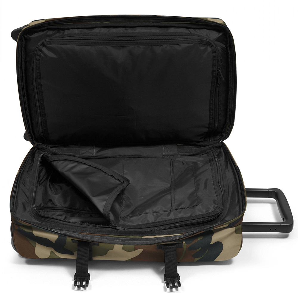 Torba hybrydowa Strapverz S Eastpak idealnie nadaje się na bagaż podręczny (sprawdź wymagania linii lotniczych przed podróżą); może być używana jako torba na kółkach lub aby mieć wolne ręce jako plecak. Jej wnętrze podzielone na dwie oddzielne komory, łatwo pozwala zorganizować najpotrzebniejsze rzeczy, które przydadzą się w krótkiej podróży biznesowej albo urlopowej. Każda przegroda torby posiada zasuwaną, tekstylną przekładką zasuwaną zamkiem błyskawicznym, dzięki czemu łatwo odseparować pakowane przedmioty. Do organizacji drobiazgów przydatne będą wewnętrzne kieszenie.