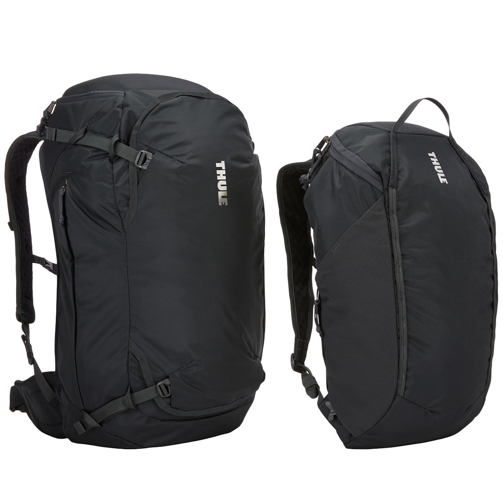 Plecak turystyczny Thule Landmark 60l z systemami chroniącymi przed kradzieżą, regulowanymi paskami i doczepianym, mniejszym plecakiem "miejskim"