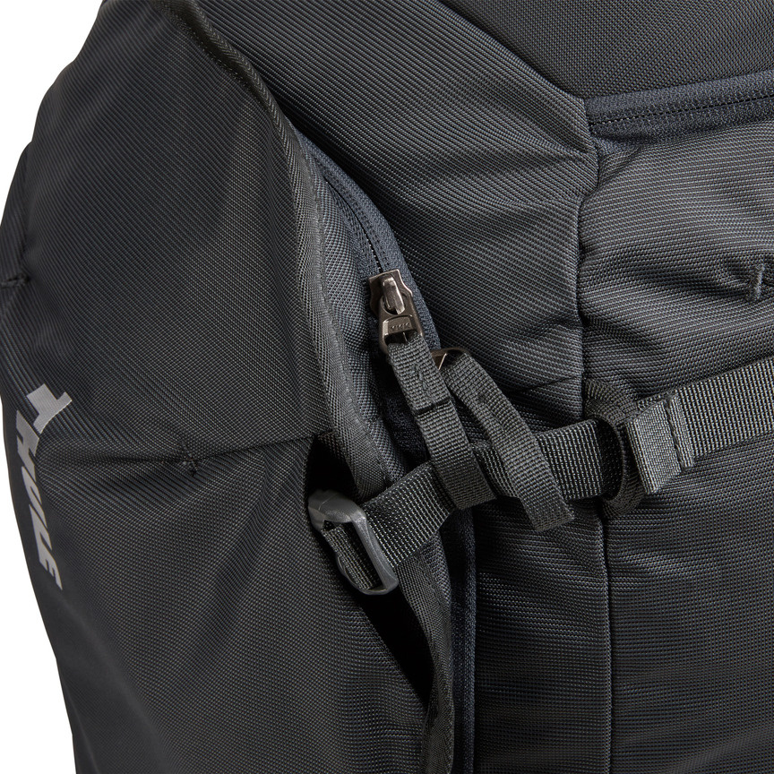 Plecak turystyczny Landmark 60 l Thule został stworzony, aby zapewnić wygodę, a jednocześnie posiada liczne rozwiązania ułatwiające pakowanie i porządkowanie zabieranego ekwipunku. Boczna "ściana" posiada kieszeń z suwakiem na bidon, butelkę lub drobne przekąski. W pasie zapinanym na piersiach znajduje się gwizdek, który możemy z łatwością umieścić w mniejszym plecaku, jeśli zajdzie taka potrzeba. Pod pokrywą główną znajduje się komora SafeZone, w której bezpiecznie możemy umieścić delikatne przedmioty np. telefon, aparat. Pod nią mamy komorę CashStash, do której możemy schować pieniądze, dokumenty bez obawy, że zostaną skradzione. Wszystko chroni specjalny system LoopLock, czyli blokada suwaków.