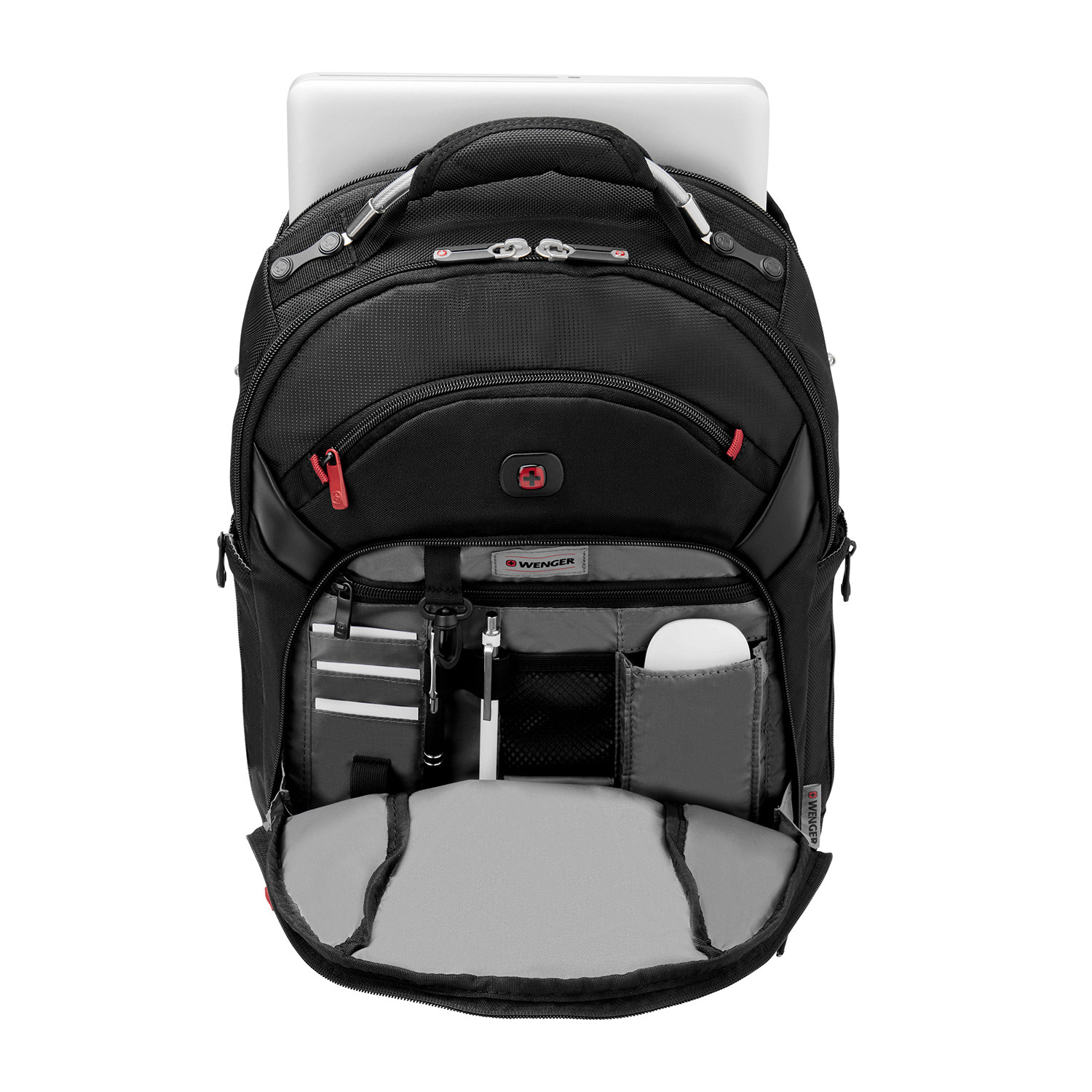 Wszechstronny 2-komorowy plecak mieszczący 15- calowego laptopa oraz 10- calowy tablet. Posiada dwie zasuwane komory główne, kieszeń przednią z organizerem oraz dwie mniejsze kieszonki na drobiazgi. Dodatkowo po bokach umieszczono otwarte kieszenie na napoje lub parasol.
