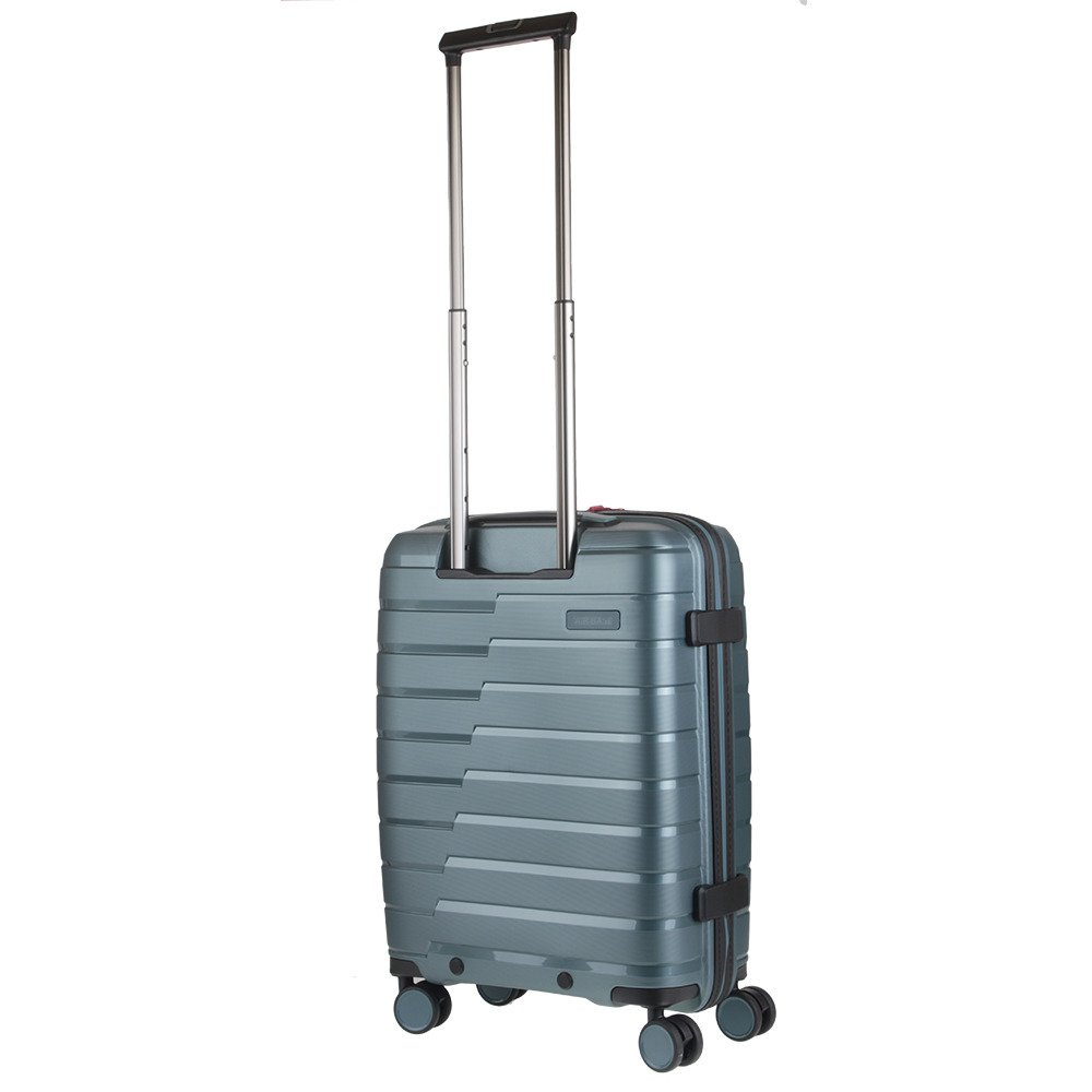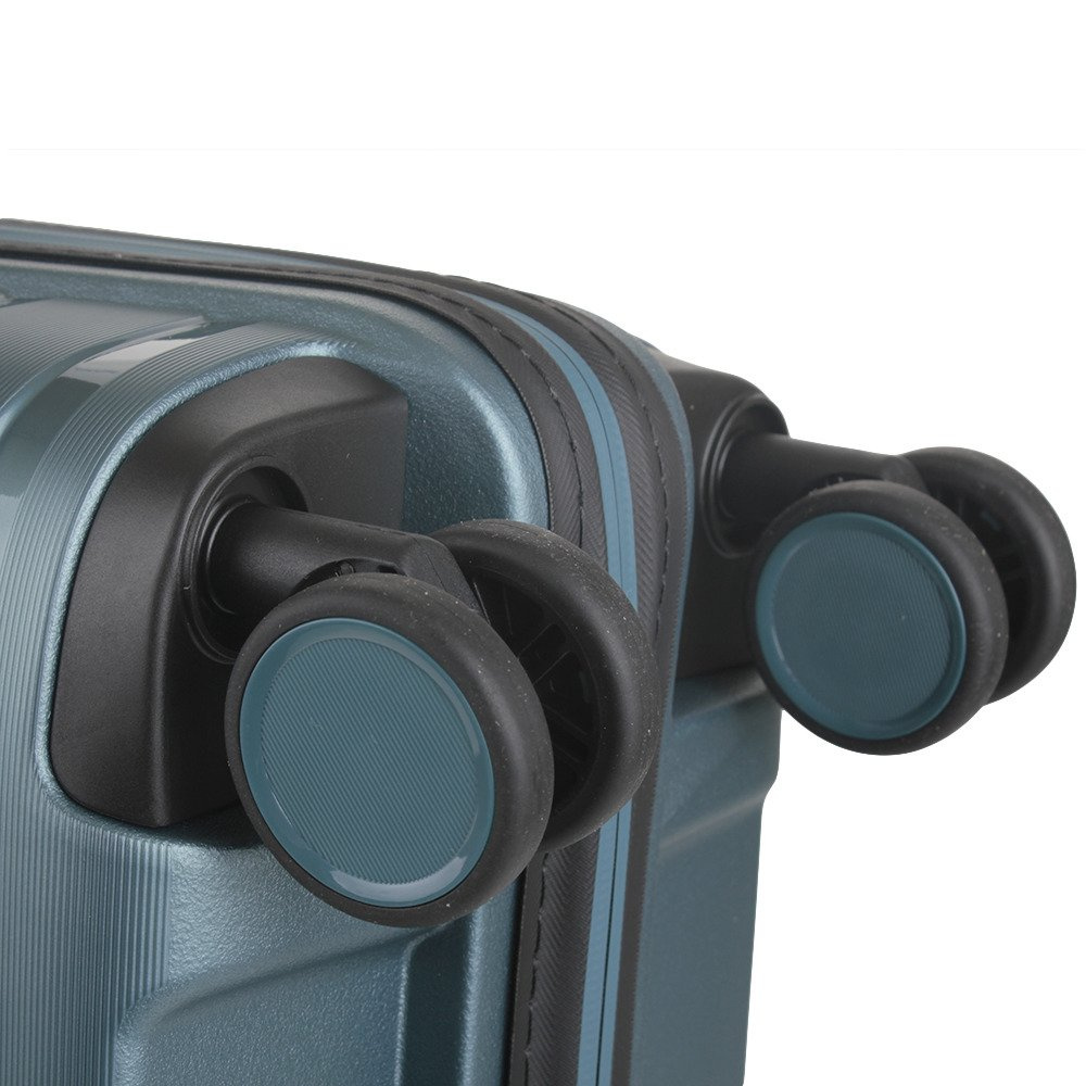 Mała walizka Travelite Air Base to walizka dla najbardziej wymagających użytkowników. Zastosowano w niej wysokiej jakości polipropylen i jednocześnie ograniczono wagę do minimum. System jezdny oparty jest na 4 podwójnych kółkach, które gwarantują bezproblemową jazdę z bagażem.