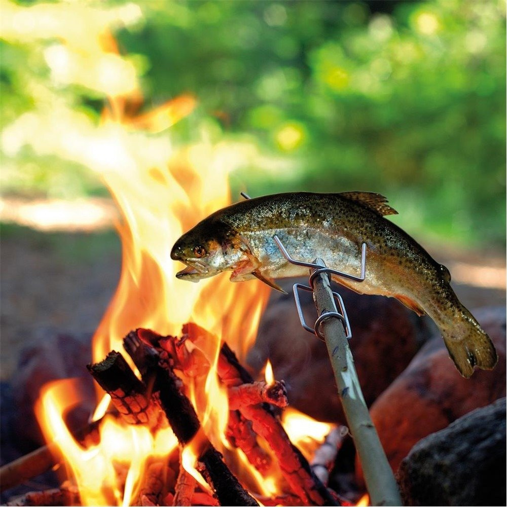 Light My Fire Szpic do pieczenia Grandpas FireFork 2 sztuki wykonane zostały ze stali nierdzewnej stali sprężystej. Fajny i sprytny sposób na przygotowanie kiełbasek np. do hot-dog'a lub czego tylko zapragniesz. Grandpas FireFork Light My Fire wymyślił przyjaciela firmy, który wyjechał na kemping z wnukiem. Wziął kawałek drutu i przekształcił go w najbardziej wszechstronny uchwyt, jaki kiedykolwiek widzieliśmy. Dzięki temu nie ma potrzeby cięcia świeżych gałęzi. Specjalnie zakrzywione końce trzymają wszystko, od marshmallows do hot dogów bezpiecznie nad ogniem. Wystarczy użyć FireFork do dowolnej gałęzi i gotować. W opakowaniu znajdują się 2 sztuki.