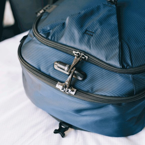 Technologia Exomesh zastosowana w materiale wierzchnim zapobiega kradzieży poprzez rozcięcie plecaka. Otwarciu plecaka natomiast zapobiegają suwaki, które dają możliwość przełożenia przez nie kłódki TSA, a ich sprytne końcówki pozwolą na zabezpieczenie zamków karabińczykami po ich zasunięciu. Przypadkowe rozsunięcie nie wchodzi w grę.