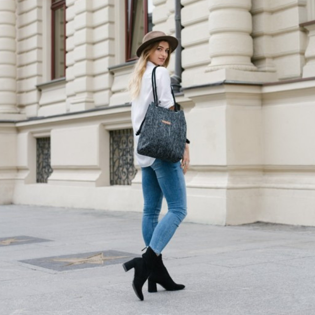 Praktyczna i pojemna torebka worek, w której z łatwością zmieścisz rzeczy o formacie A4.