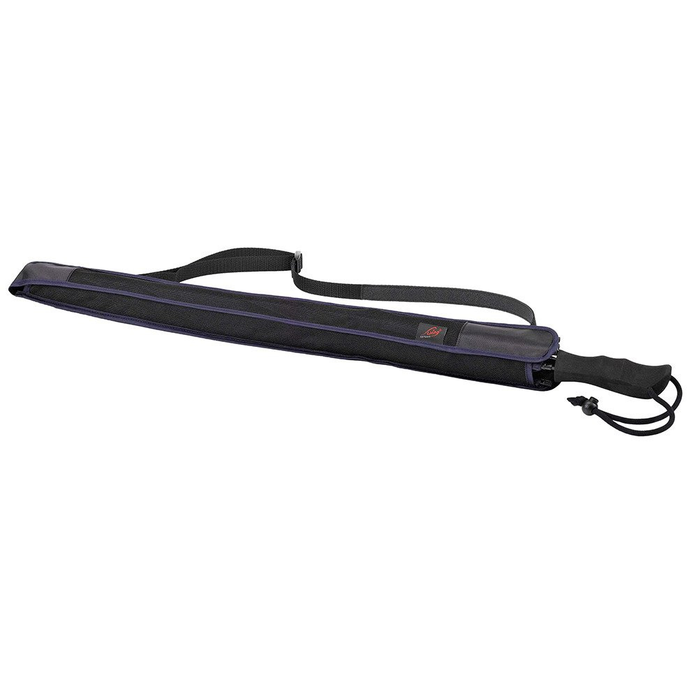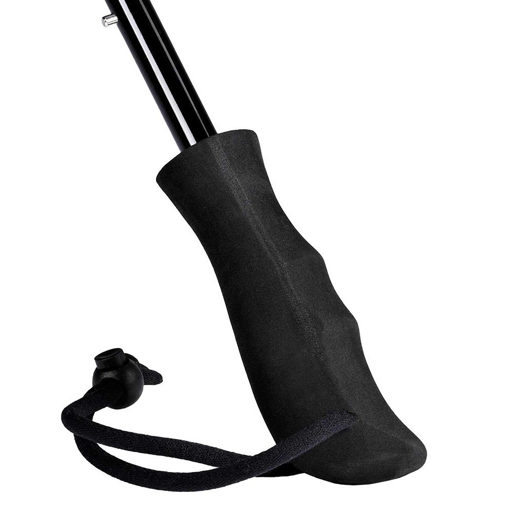 • Zamknięty parasol może być wygodnie noszony z tyłu dzięki antypoślizgowemu, regulowanemu pasowi do noszenia