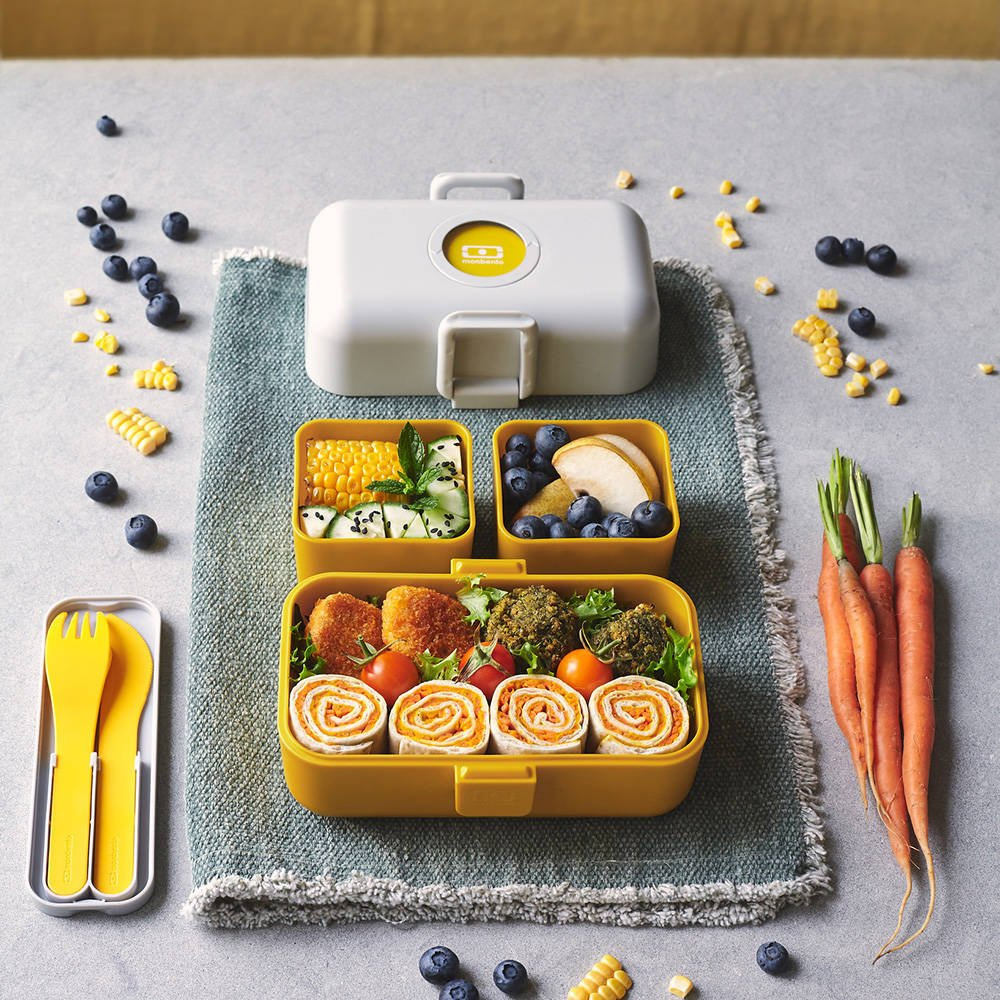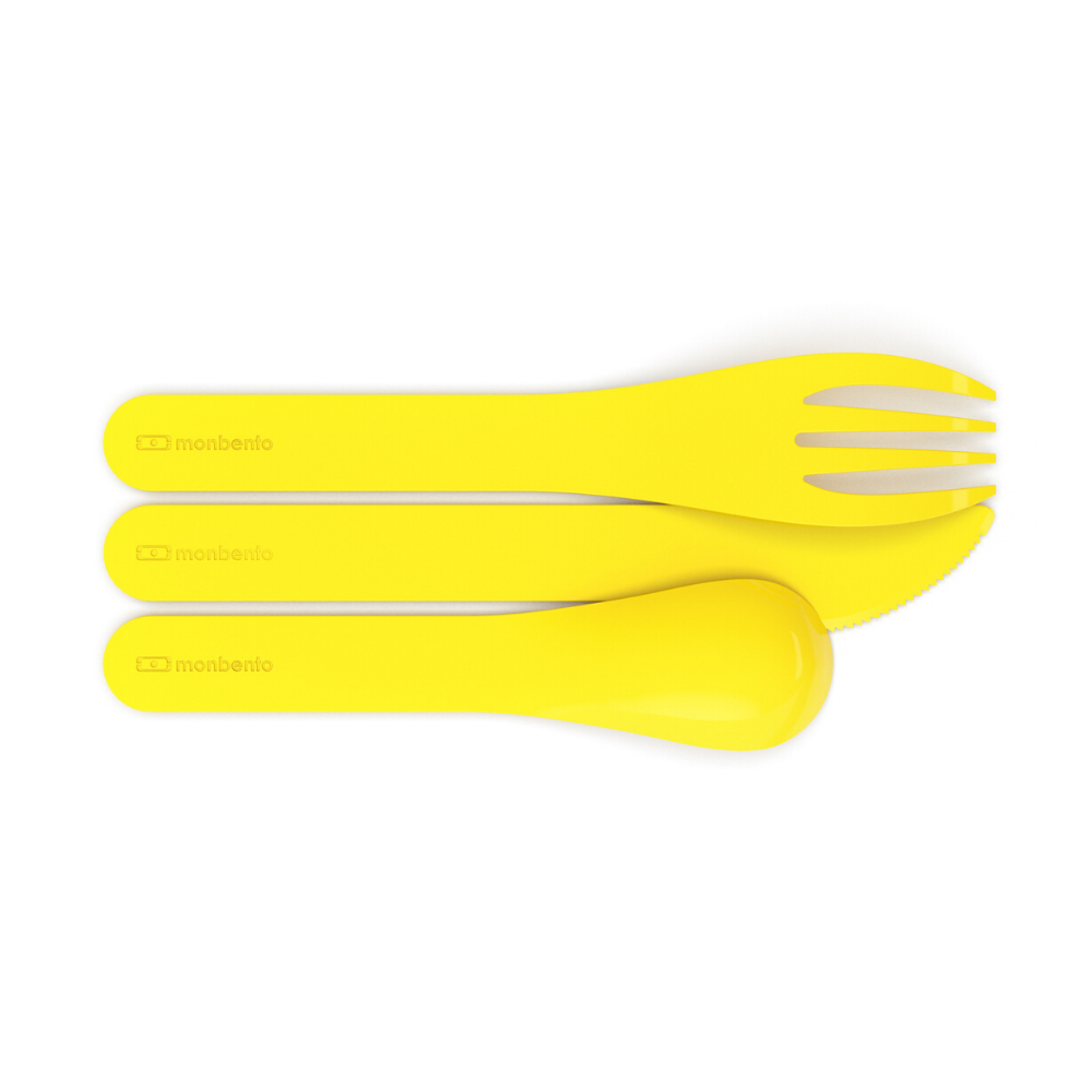 Zestaw MB Pocket Color Monbento, który składa się z widelca, noża i łyżki, można łatwo wsunąć pod górną pokrywkę pudełka na lunch MB Original i MB Square i gotowe! dzięki czemu możesz zabrać je ze sobą, gdzie chcesz: obiady w biurze, piknik z dziećmi ...