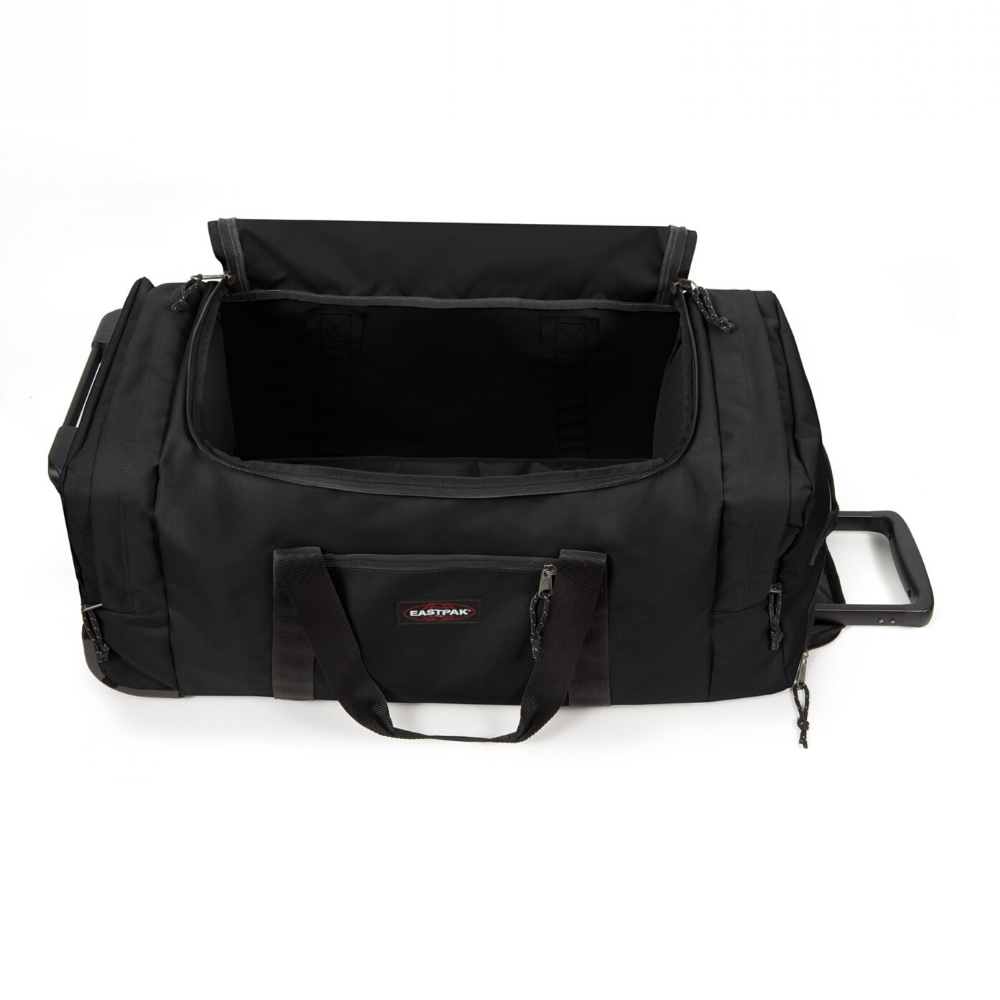 Przestronna torba sportowa Eastpak Leatherface M+ z teleskopowym uchwytem i bocznymi kieszeniami. Idealna gdy planujesz tygodniową podróż.