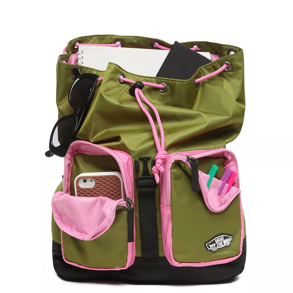 Modny, damski plecak Vans Geomancer z komorą główną zamykaną na klapę oraz ściągacz. Pomieści między innymi laptopa.