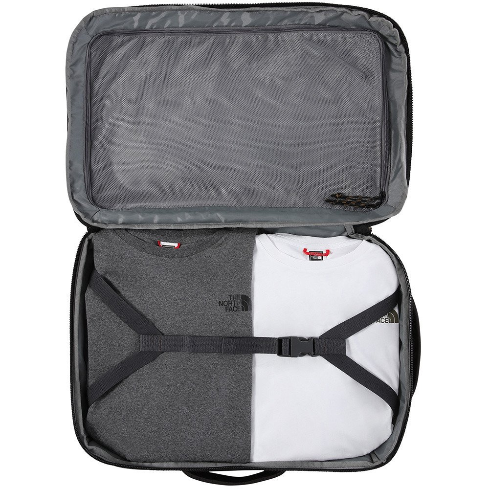 Plecak Travel Duffel The North Face na weekendową przerwę w mieście lub tygodniową podróż służbową. Jego wnętrze składa się z dwóch części tak jak w walizce, dzięki czemu wszystkie rzeczy pozostają uporządkowane. Wygodny do noszenia dzięki wyściółce na paskach naramiennych i tylnym panelowi. Duża zewnętrzna kieszeń nadaje się do przechowywania paszportu, mapy, kart pokładowych i innych niezbędnych akcesoriów podróżnych, które są pod ręką. W tylnej części plecaka Duffel Backpack znajduje się wyściełana kieszeń na laptopa.