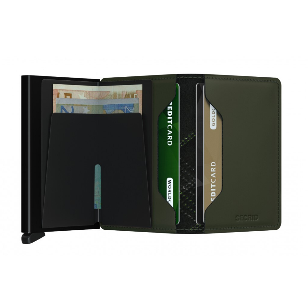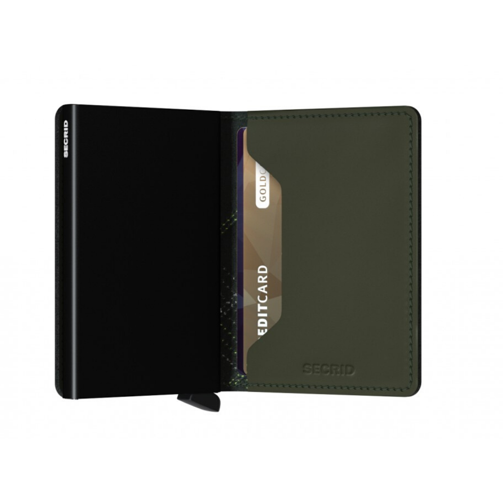 Slimwallet Secrid Optical to kompaktowy, kieszonkowy, lekki portfel wyposażony w aluminiowy Cardprotector chroniący kart płatnicze.