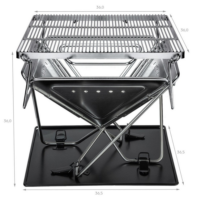 Składany, przenośny grill stanie się nieodłącznym kompanem gdy nastaną cieplejsze dni. Można zabrać go ze sobą wszędzie, doskonale sprawdzi się podczas biwaków, działkowych spotkań ze znajomymi, weekendowych wypadów nad wodę, czy na kempingu podczas przygotowywania posiłków dla rodziny. Grill został stworzony z myślą o osobach kochających podróże i dobre jedzenie. Jego kompaktowy rozmiar po złożeniu na płasko sprawia, że zajmuje niewiele miejsca i jest łatwy do przenoszenia, przewożenia i przechowywania. Grill posiada w zestawie praktyczną torbę do przechowywania.