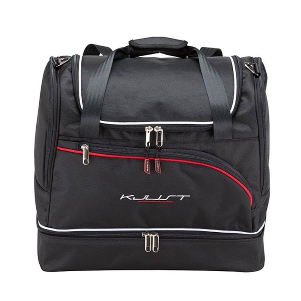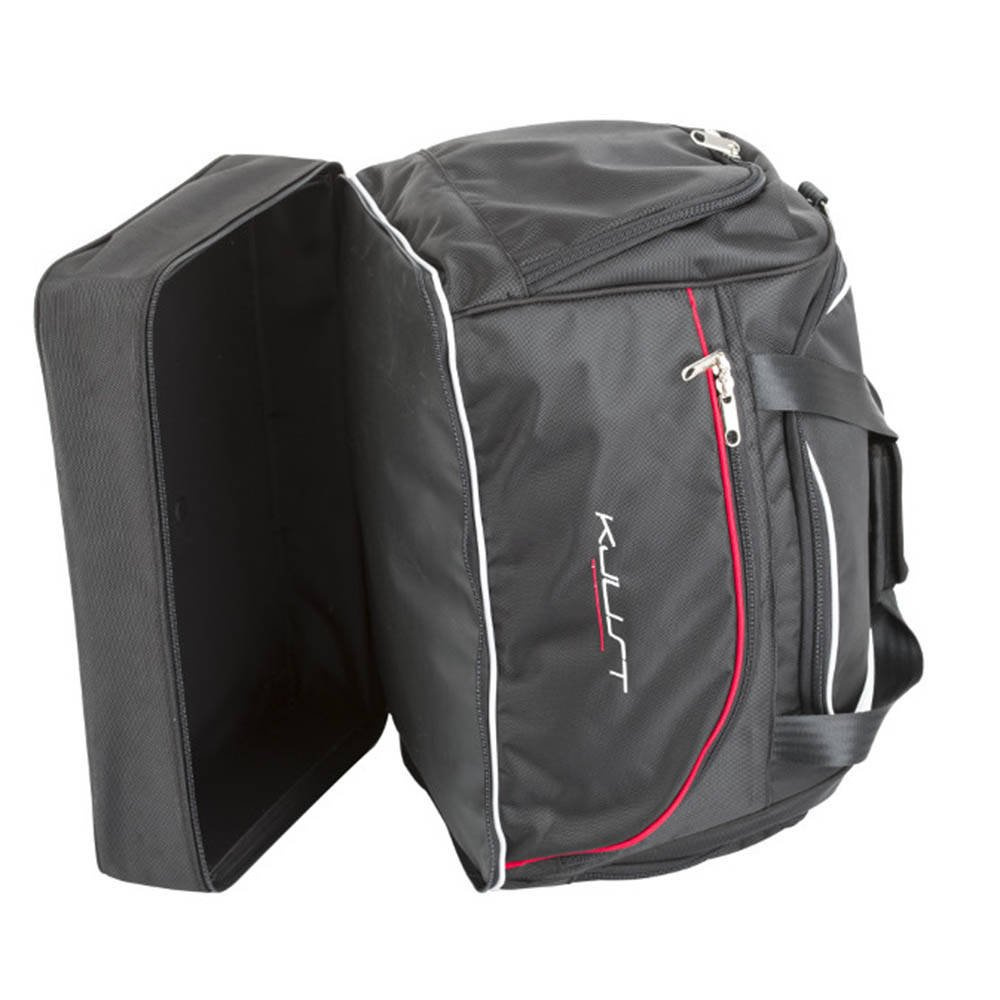 - spójna kolorystyka: we wszystkich torbach Kjust wykorzystano spójną kolorystykę (czerń, biel i czerwone detale) oraz haftowane logo