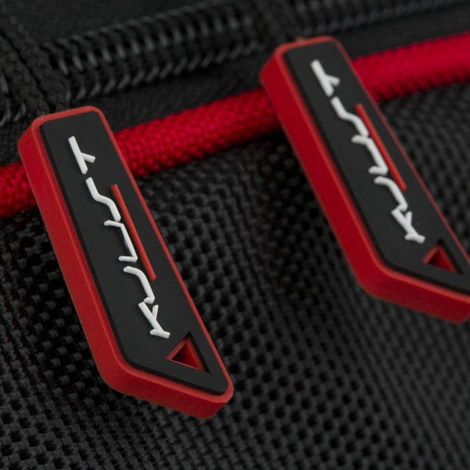 - spójna kolorystyka: we wszystkich torbach Kjust wykorzystano spójną kolorystykę (czerń, biel i czerwone detale) oraz haftowane logo