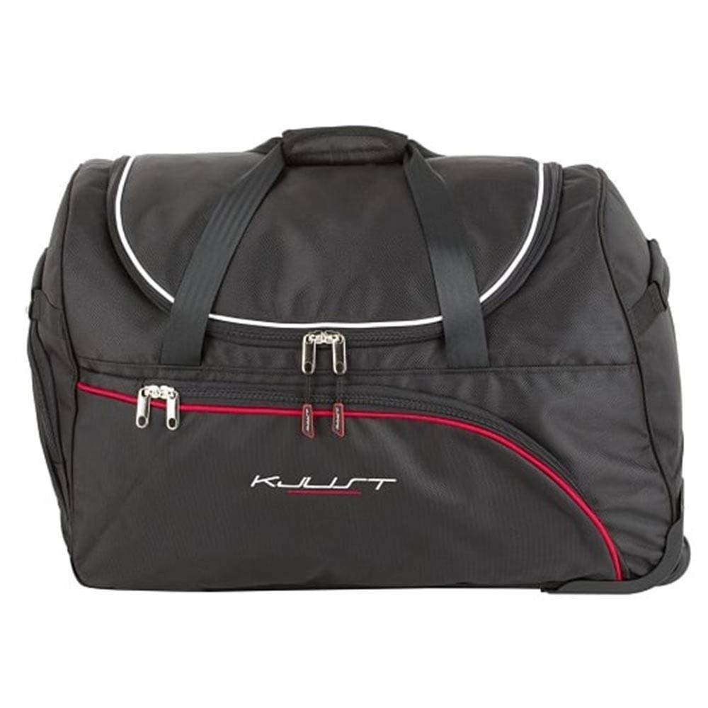 Podróżna torba na kółkach Kjust o asymetrycznej konstrukcji idealnie pasuje do oparcia tylnych foteli w samochodzie, co zwiększa powierzchnię pakowania i bezpieczeństwo podróży. Łatwa do załadowania i wyjęcia z bagażnika dla komfortowej podróży.