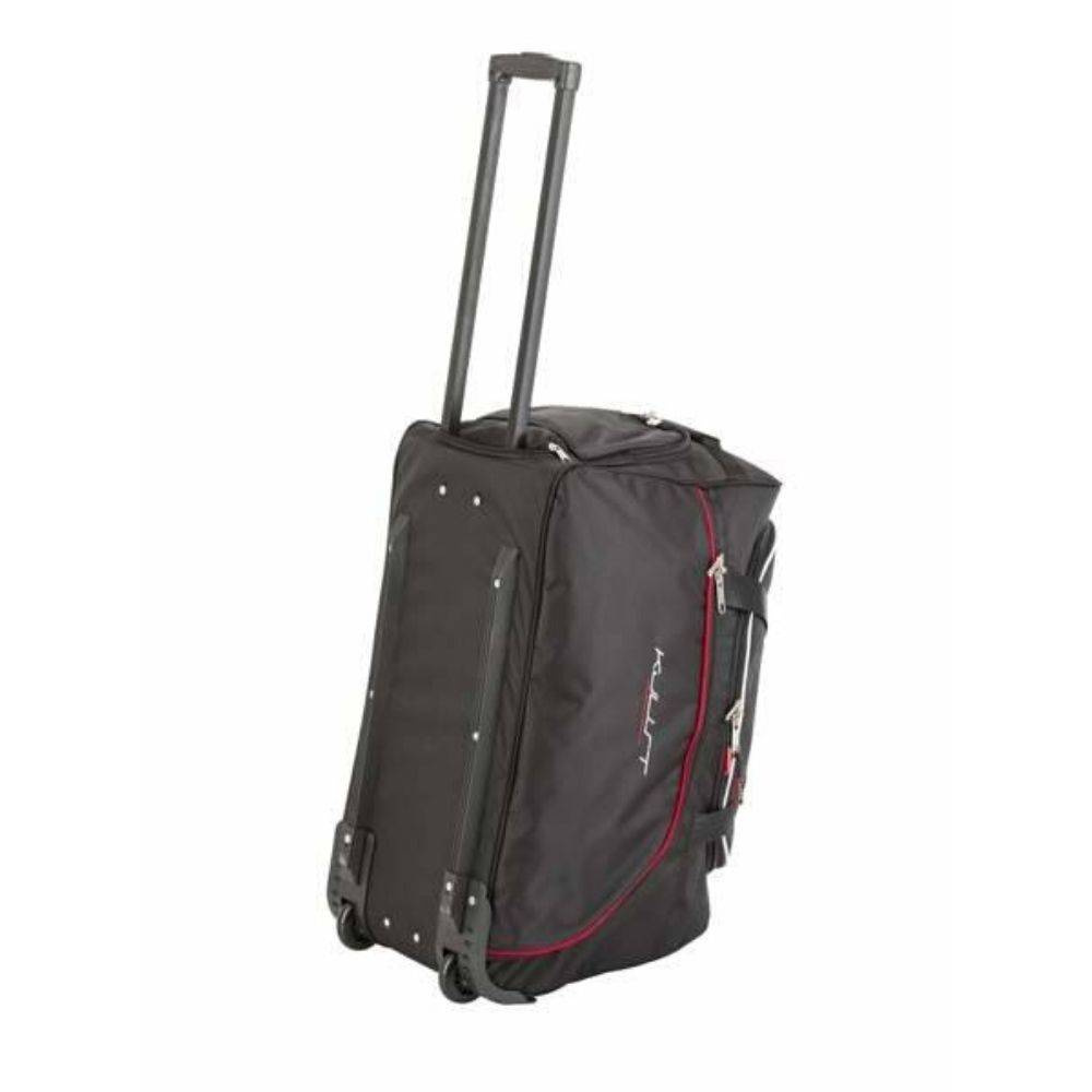 - torba na kółkach ma płynnie działający wysuwany uchwyt, który umożliwia umieszczenie innej torby i ciągnięcia ich razem