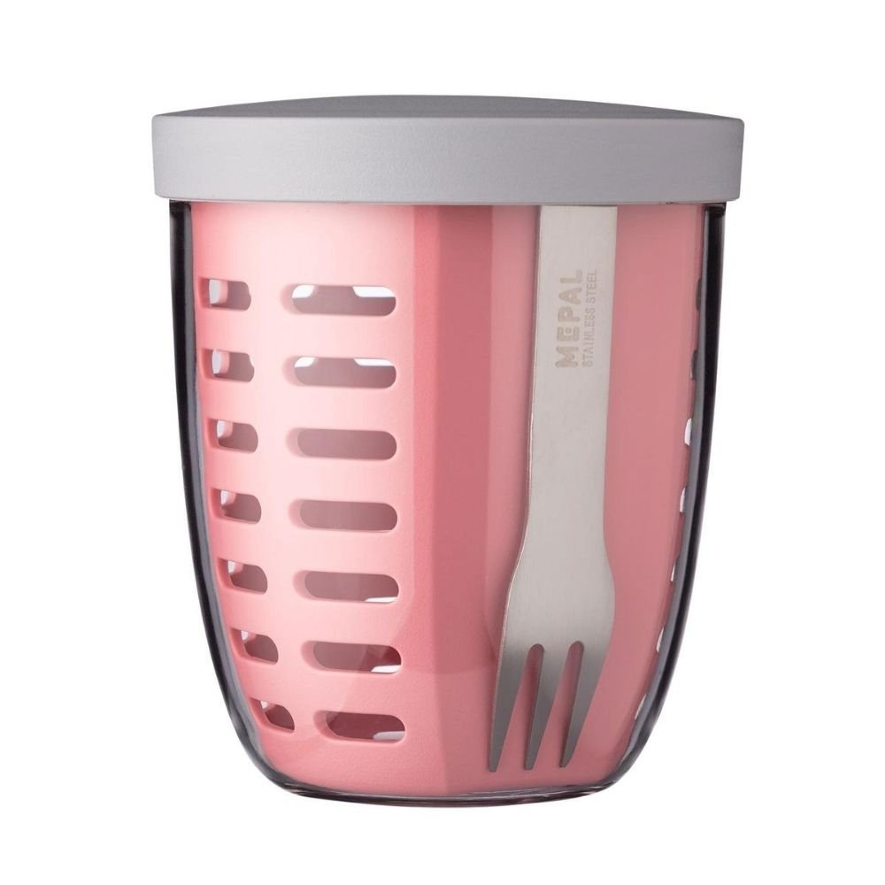 W zestawie z naczyniem dołączono poręczny widelec RVS, dzięki czemu możesz cieszyć się idealną przekąską w podróży! Oczywiście pojemnik  fruit & veggie pot Ellipse Mepal na owoce i warzywa można myć w zmywarce. Ponadto pokrywki pojemników na owoce i warzywa i przekąski są wymienne.