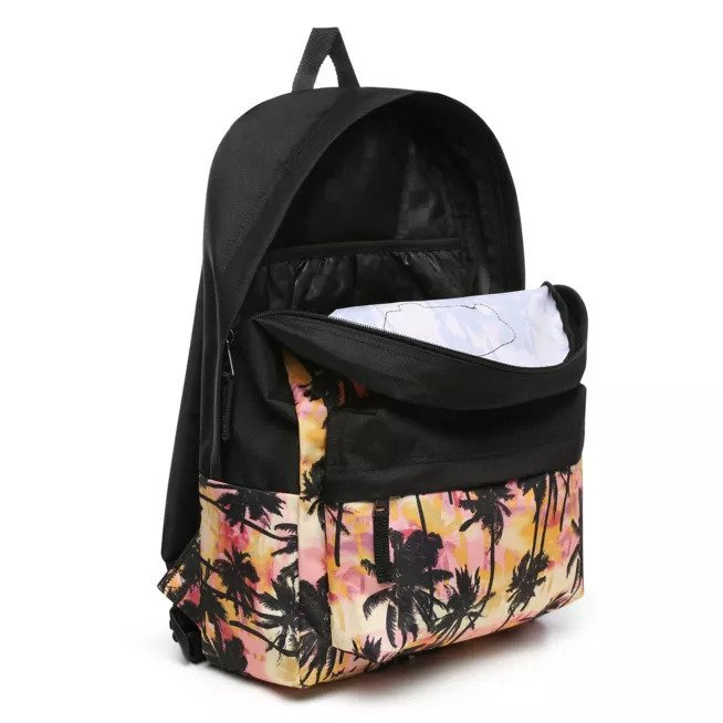 Pojemny, klasyczny plecak szkolny i miejski Vans Realm. Jest kwintesencją cech, z których słynie marka Vans - minimalistyczny design, wytrzymałość i niezawodność. Komora główna pomieści format A4. Z przodu znajduje się dodatkowa mniejsza kieszeń z wewnętrznymi przegródkami na drobne akcesoria. Szelki są miękko wyściełane, co niweluje nacisk na ramiona nawet przy mocno obładowanym plecaku.