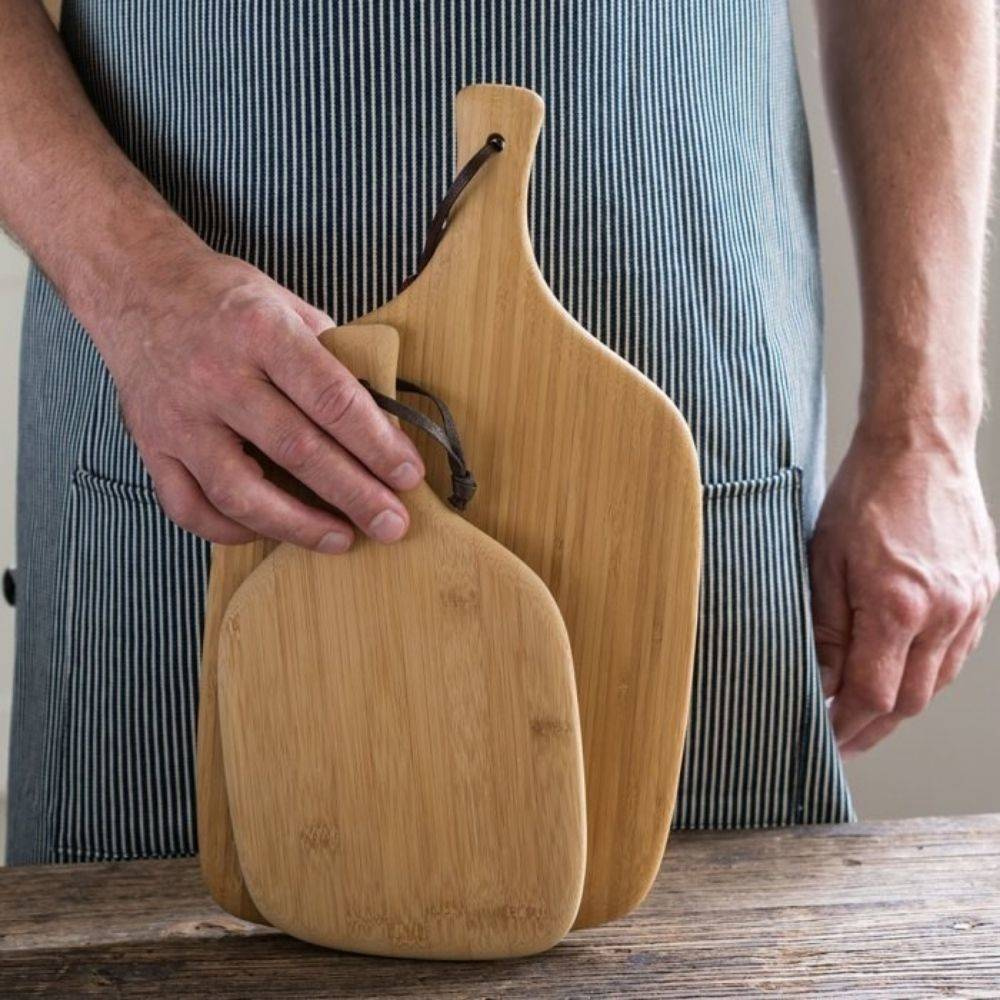 Bambu oferuje szeroką gamę desek do krojenia, które będą pasować do każdej kuchni - od ponadczasowych, klasycznych wzorów po odpowiednio wyprofilowane deski, które sprawdzą się jako półmisek do serwowania. Bambus pochłania niewiele wilgoci, dzięki czemu jest odporny na pęcznienie i wypaczanie, dzięki czemu jest doskonałym, trwałym materiałem do codziennego użytku. Deska Bambu Artisan Board jest dwustronna - jedna strona służy do cięcia, a drugiej można używać do serwowania.
