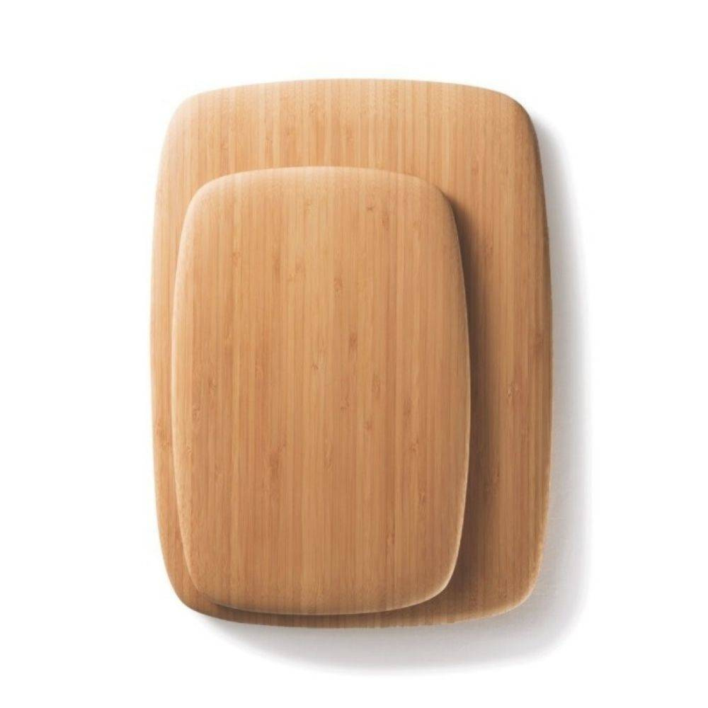 Bambu oferuje szeroką gamę desek do krojenia, które będą pasować do każdej kuchni - od ponadczasowych, klasycznych wzorów po odpowiednio wyprofilowane deski, które sprawdzą się jako półmisek do serwowania. Bambus pochłania niewiele wilgoci, dzięki czemu jest odporny na pęcznienie i wypaczanie, dzięki czemu jest doskonałym, trwałym materiałem do codziennego użytku. Duża deska kuchenna Bambu Classic Bamboo Cutting & Serving Board jest dwustronna - jedna strona służy do cięcia, a drugiej można używać do serwowania.