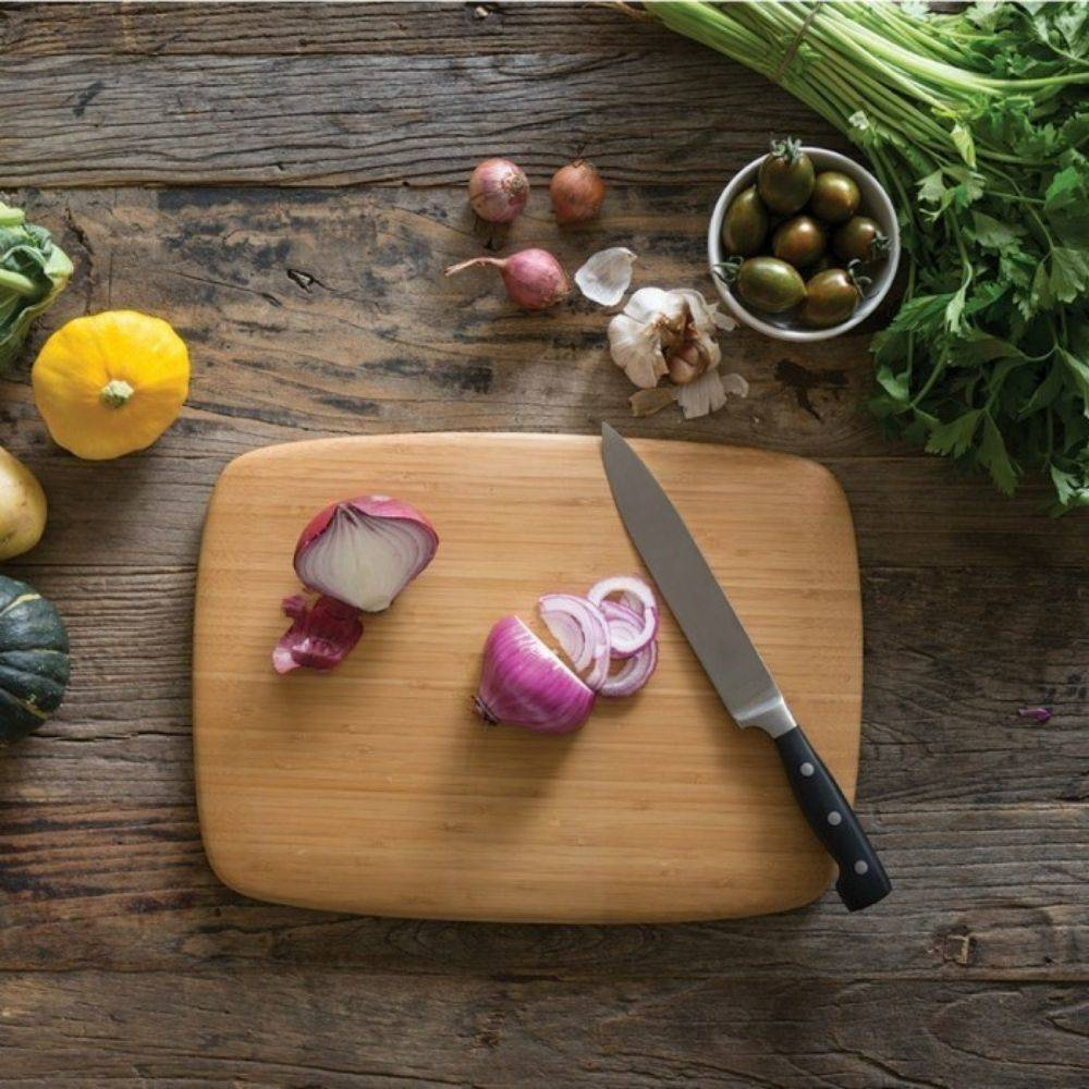 Bambusowa deska do krojenia i serwowania żywności Bambu o klasycznym i ponadczasowym wyglądzie, doskonale pasuje do każdej kuchni i jadalni.