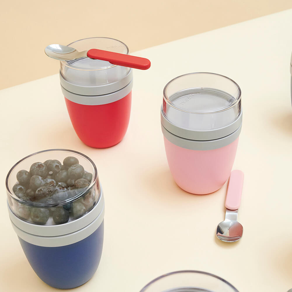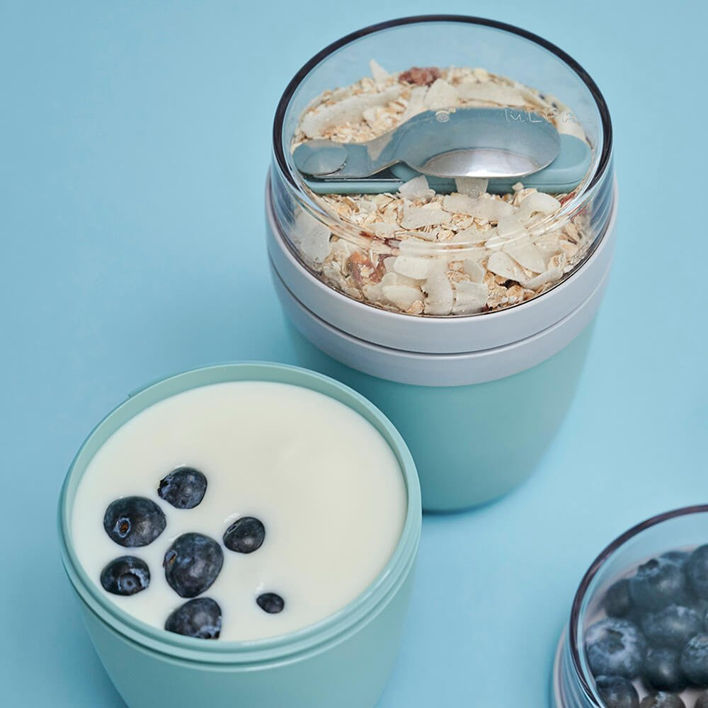 Uwaga! Składana łyżka Mepal Ellipse nie mieści się w górnej komorze małego pojemnika na jogurt Ellipse