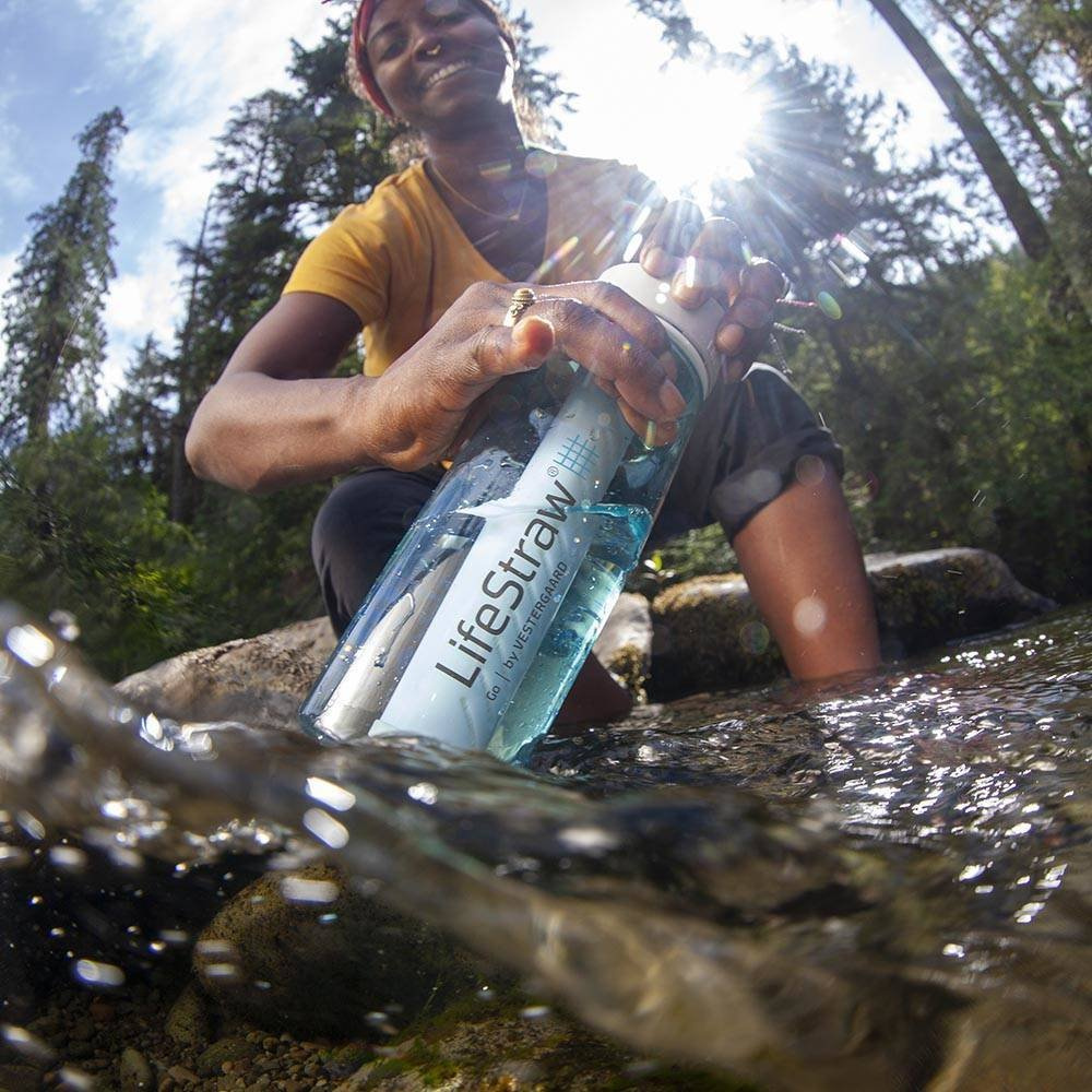 Butelka filtrująca LifeStraw Go 1 l uzdatnia wodę, umożliwiając jej picie z dowolnego źródła napotkanego w terenie. Dzięki dwustopniowej filtracji z wody usuwane są bakterie, pasożyty, mikrodrobinki plastiku, chlor, organiczne substancje chemiczne, brud i piasek, dlatego butelka LifeStraw Go umożliwia bezpieczne picie wody pochodzącej z jezior, rzek i strumieni. LifeStraw Go to wielorazowa butelka filtrująca to niezbędny element ekwipunku podróżników, sportowców, survivalowcó, turystów i tych, którzy pragną pić czystą i smaczną wodę.