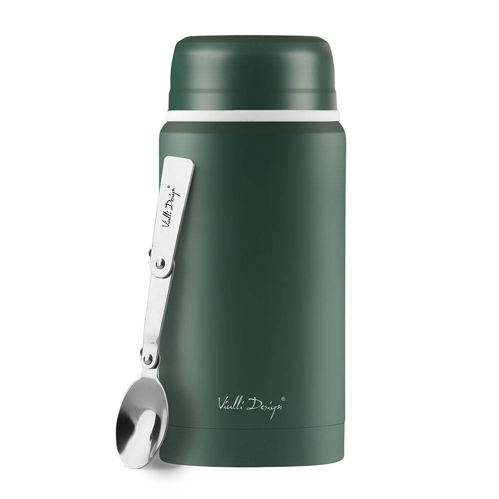 100% szczelny termos obiadowy Fouri 750 ml ze składaną łyżką Vialli Design zapewni gorący lub zimny posiłek gdy jesteś z dala od domu. Gdy poczujesz głód, zrób sobie przerwę i sięgnij po coś smacznego i zdrowego wprost ze swojego termosu!