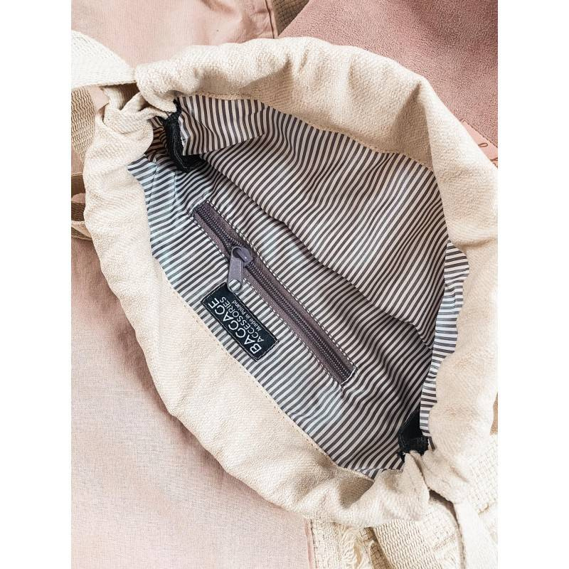 - dwa bawełniane uchwyty, dzięki którym można plecak nosić w dłoni