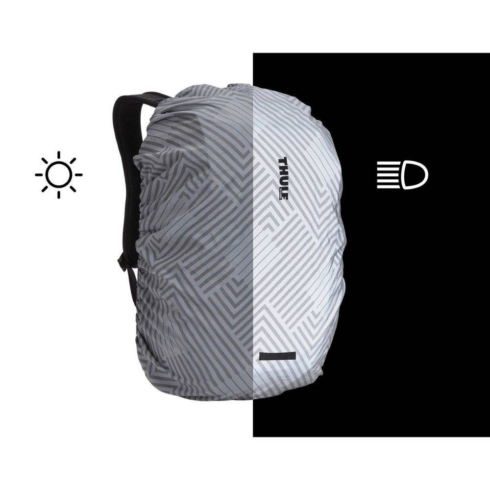 Plecak na laptopa Thule Paramount Commuter 27 l posiada zintegrowany pokrowiec przeciwdeszczowy z odblaskową powłoką, który nie tylko doskonale chroni zawartość, ale również zapewnia nam widoczność przy gorszym oświetleniu.