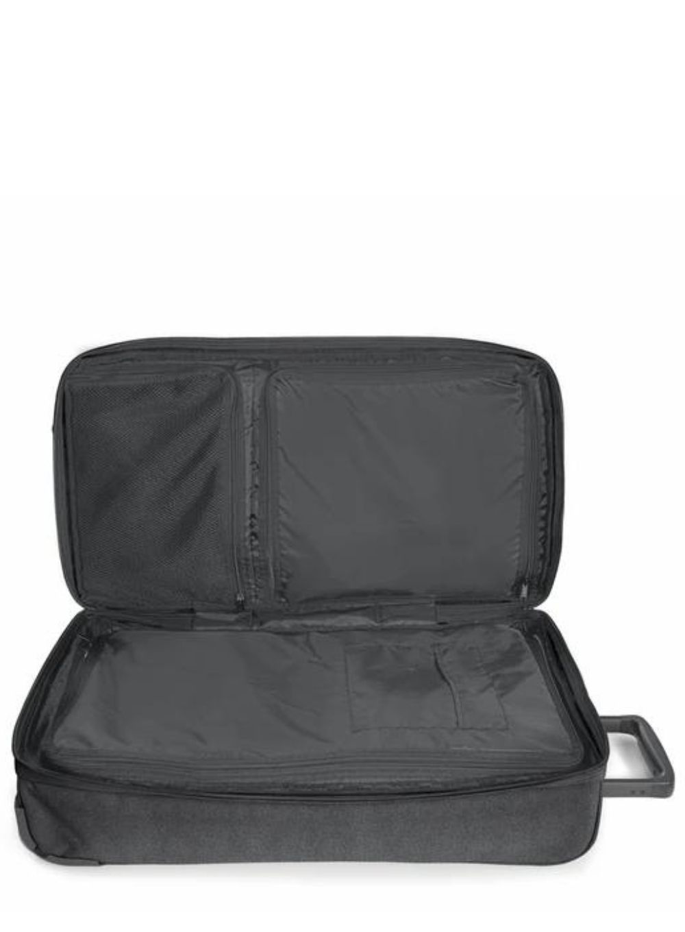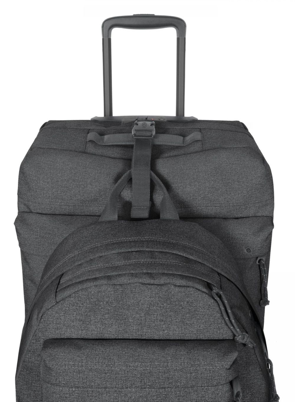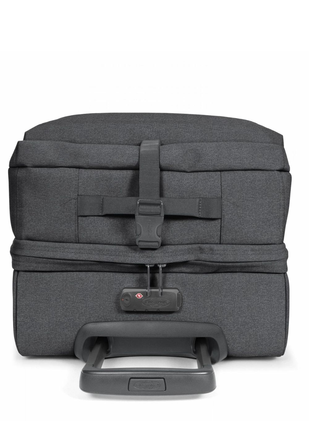 Wykonana z poliestru torba podróżna na kółkach Double Tranverz L Eastpak ma wysuwany teleskopowy uchwyt do ciągnięcia, zamek szyfrowy TSA dla bezpiecznej podróży i specjalny pasek do mocowania na zewnątrz mniejszego plecaka lub torby.