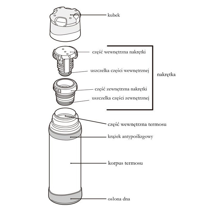 • Perforowany kubek termosu wykonany z dwóch materiałów o różnej twardości, tak aby nie ślizgał się przy otwieraniu termosu