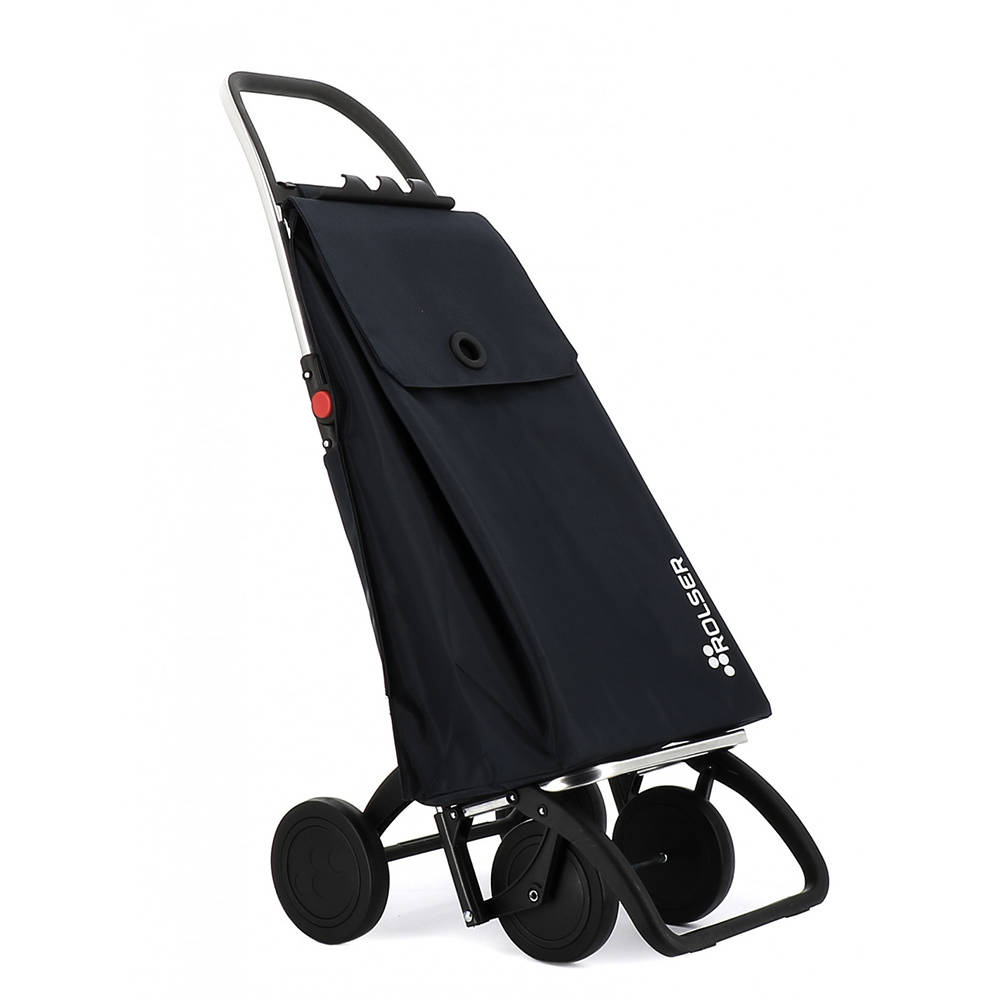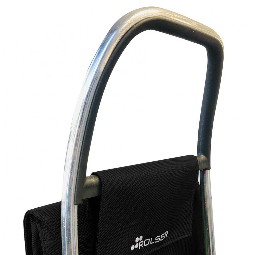 Aluminiowy wózek na zakupy na 4 kółkach Rolser Logic 2+2 Akanto MF, aby użytkownik nie musiał dźwigać ciężkich zakupów. Posiada specjalny uchwyt pasujący do zawieszenia na wózku marketowym.