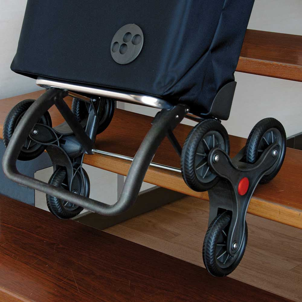 • 6 kółek dostosowujących się do podłoża (po 3 z każdej ze stron) ułatwiających wnoszenie zakupów po schodach