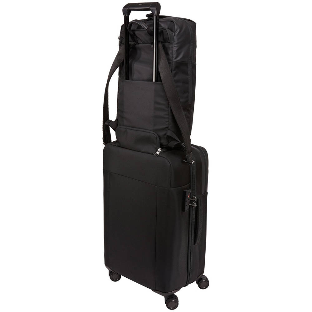 - Zapinany na zamek panel przelotowy z tyłu torby do bezpiecznego mocowania do większości bagażu na kółkach