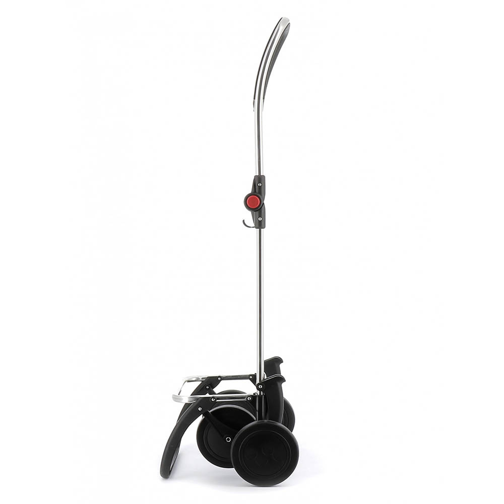 Kompaktowe rozmiary oraz system podwójnego składania do przodu/do tyłu sprawiają, że wózek zmieści się w bagażniku nawet małego samochodu. Ten czterokołowy model możemy swobodnie nieść w ręce kiedy jest złożony, a następnie zaczepić go poprzez innowacyjny zaczep (adapter) do wózka w markecie!