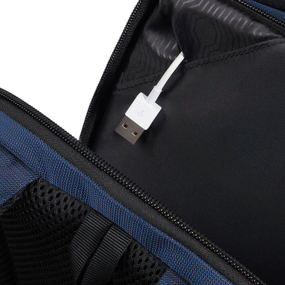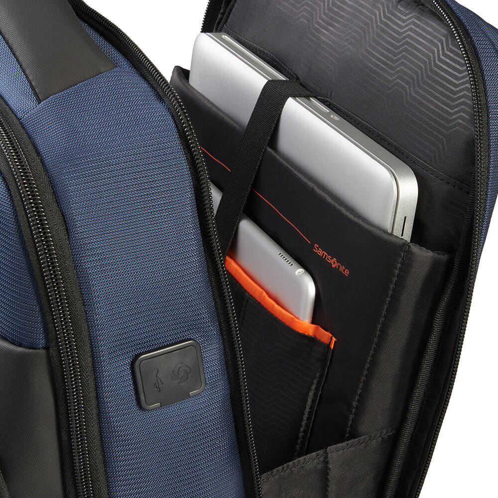 Plecak biznesowy Samsonite Mysight 14,1 ma przednią komorę na dokumenty (z elastycznym sorterem, wyjmowanym piórnikiem / saszetką i zapinaną na zamek kieszenią na różne materiały) oraz tylną komorę z wyściełanymi kieszeniami na 14,1-calowy komputer i tablet. Na zewnątrz duża kieszeń zapinana na zamek zawiera różne opcje przechowywania odpowiednich do rzeczy osobistych. Mała przednia kieszeń zapinana na zamek umożliwia na przykład błyskawiczne odnalezienie telefonu. Boczna kieszeń pozwala na przenoszenie małej butelki wody.