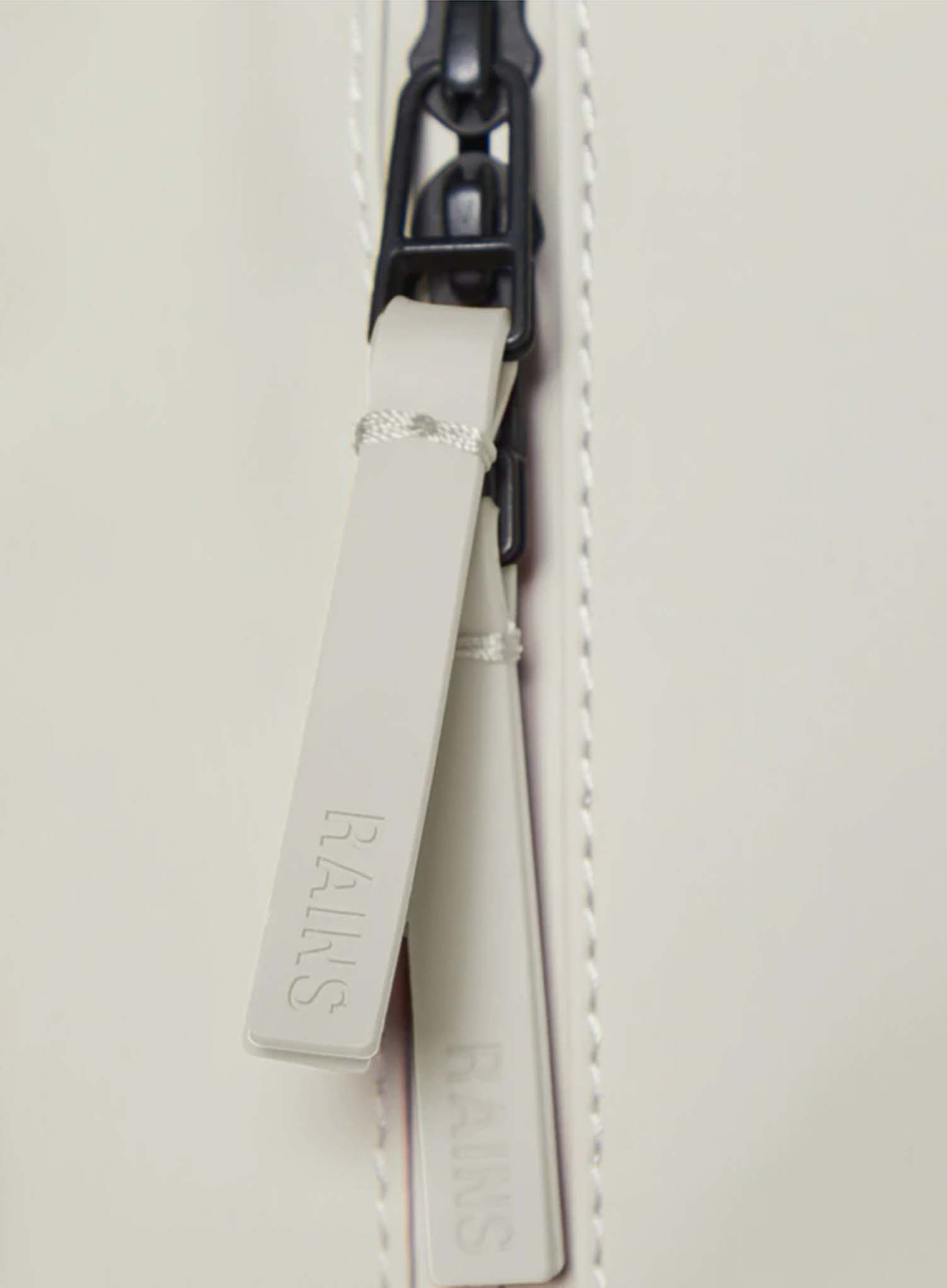 Plecak jest wykonana z charakterystycznego wodoodpornego materiału PU firmy Rains, zaprojektowanego z myślą o wytrzymałości, trwałości i gładkości.