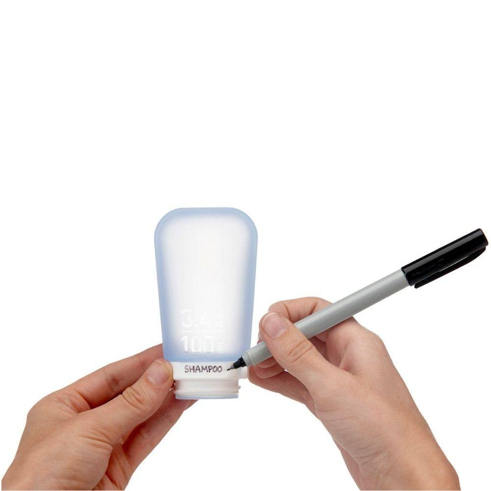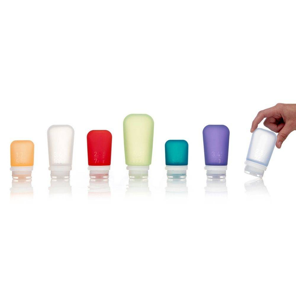 Silikonowa butelka marki Humangear do transportu i przechowywania żeli pod prysznic, mydeł w płynie czy szamponów. Nie wchodzi w reakcję z jedzeniem, dlatego bez problemu można w niej transportować również artykuły spożywcze jak ketchup.