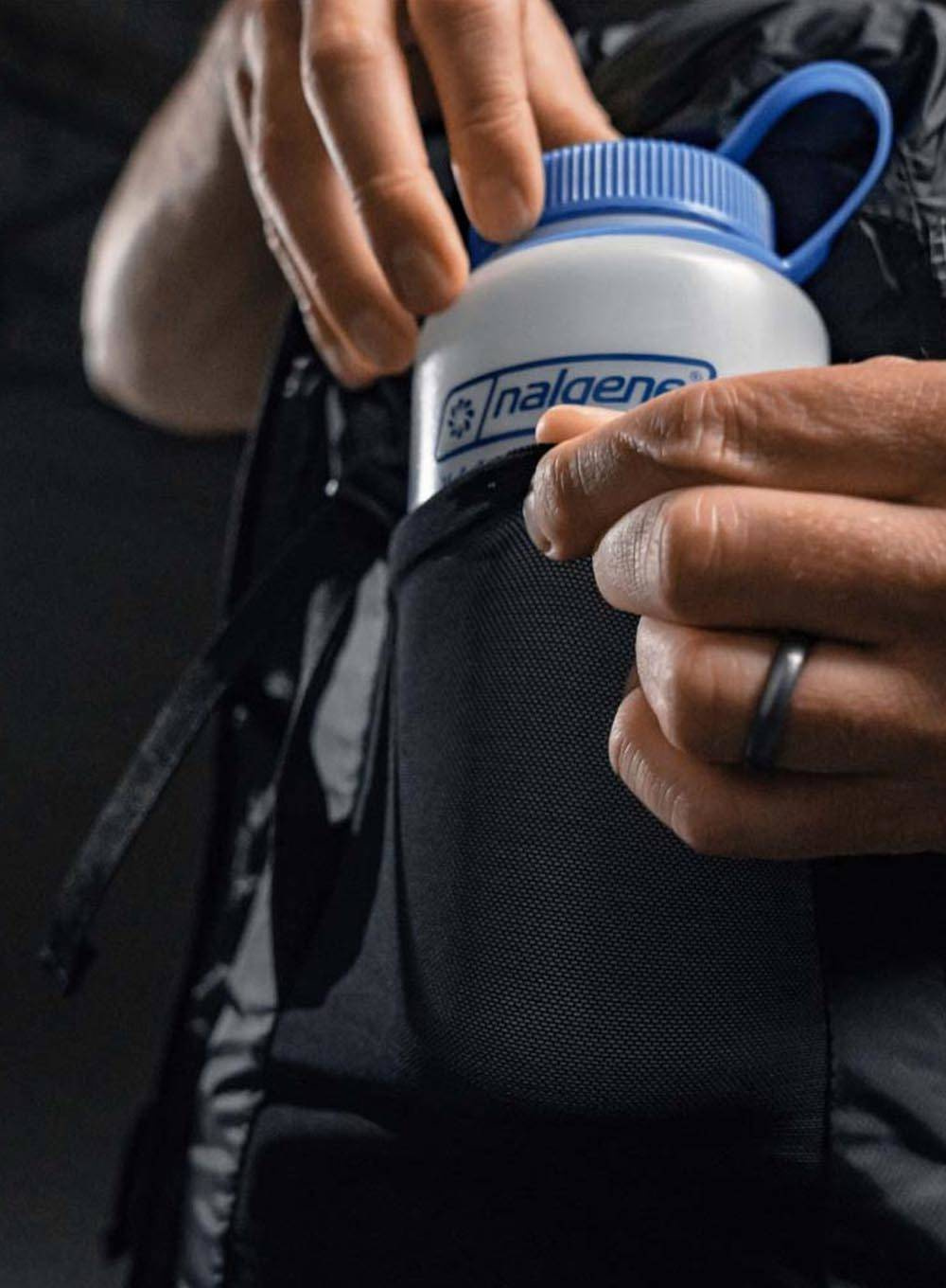 Gotowy na górskie wędrówki i wspinaczkę posiada funkcje takie jak: kompatybilność z nawodnieniem, pętle do mocowania sprzętu i uchwyty amortyzujące dla narzędzi. Pas biodrowy z kieszeniami, pasek piersiowy i paski ramienne rozkładające ciężar zapewniają zwinne i wyważone dopasowanie.