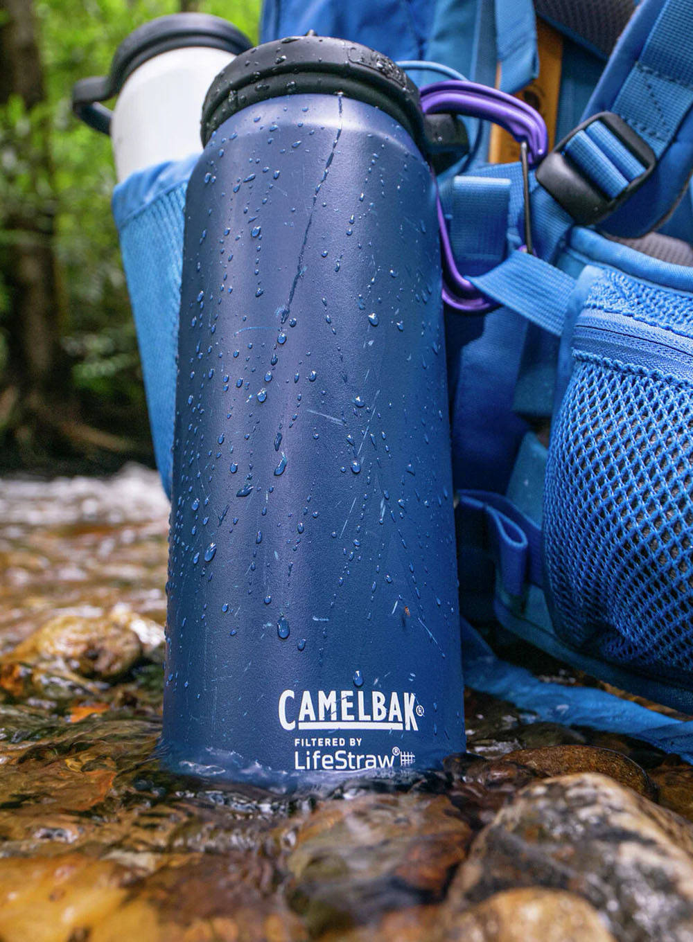 Stalowa butelka termiczna Camelbak z filtrem Lifestraw o pojemności 1 litra pozwoli cieszyć się czystą wodą pozbawioną wszelkich zanieczyszczeń. Podwójne ścianki zapewniają długotrwałe utrzymywanie temperatury napoju.