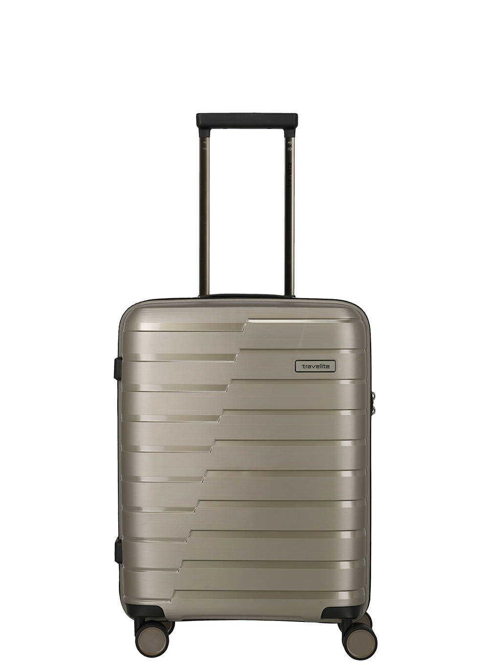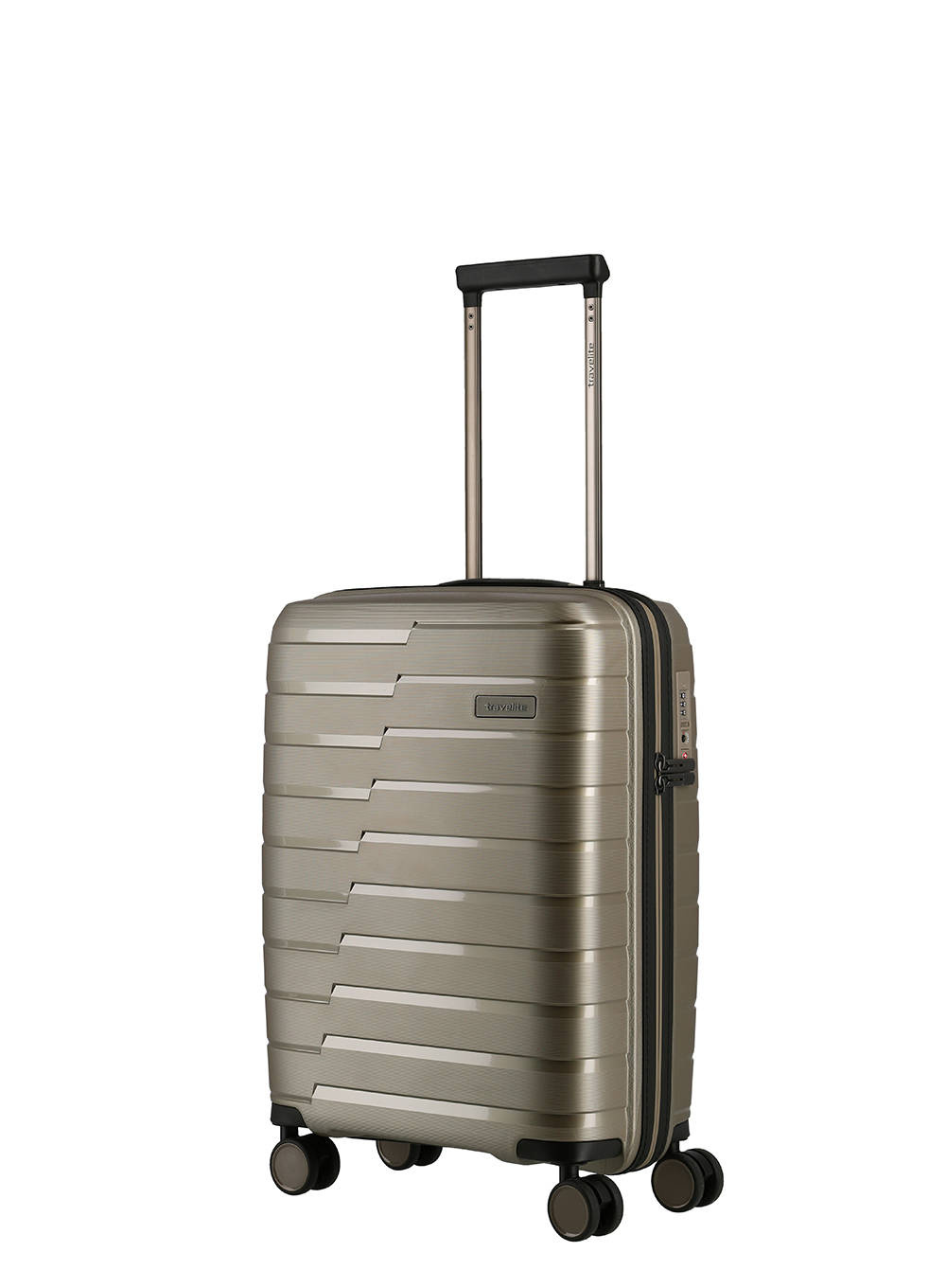 Mała walizka Travelite Air Base to walizka dla najbardziej wymagających użytkowników. Zastosowano w niej wysokiej jakości polipropylen i jednocześnie ograniczono wagę do minimum. System jezdny oparty jest na 4 podwójnych kółkach, które gwarantują bezproblemową jazdę z bagażem.