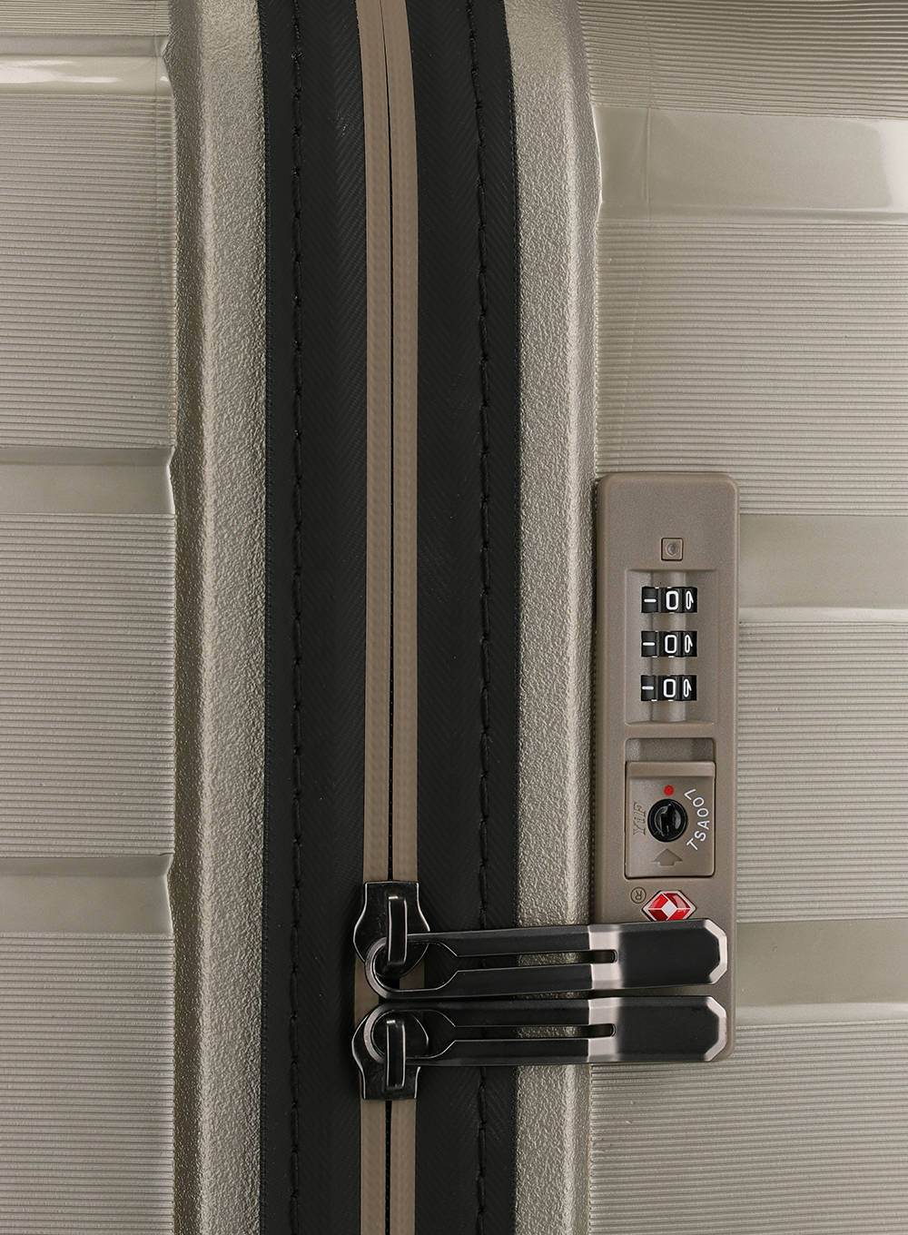 Walizki twarde mają wodoodporną skorupę. W modelu Air Base ponadto zastosowano również wodoszczelny laminowany suwak. Zamek posiada standard TSA.