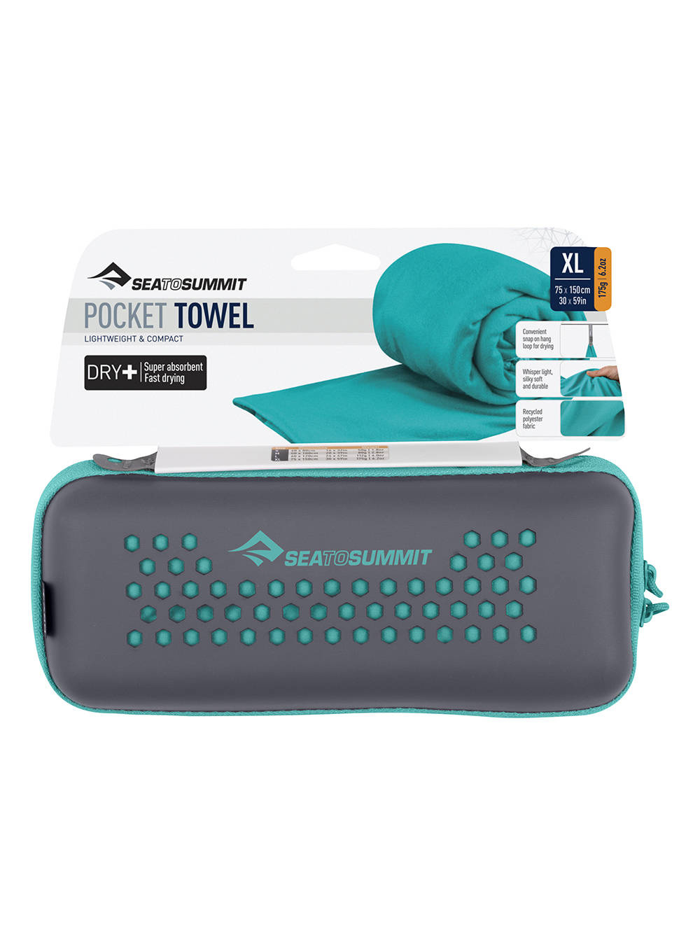 Ręcznik Pocket Towel TM wykonany z jest z bardzo lekkiej, chłonnej tkaniny. Absorbuje trzy razy więcej wody niż sam waży. Ręcznik idealnie nadaje się do wzięcia ze sobą w podróż, ponieważ jest niezwykle lekki i kompaktowy. Posiada pętlę służącą do zawieszania. Ręcznik jest największy z całej serii (rozmiar XL).