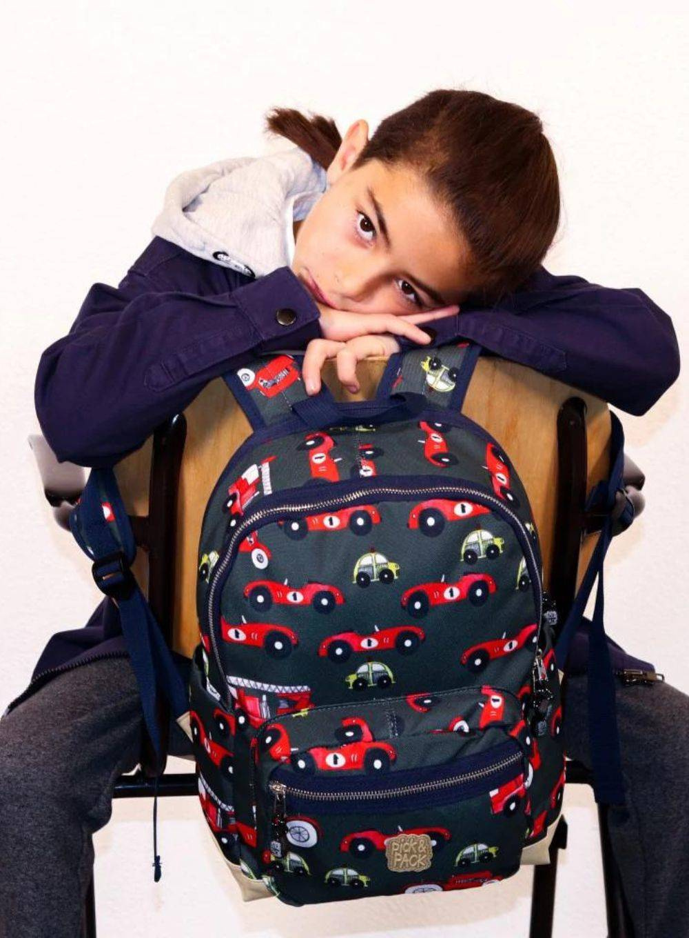 Idealny na pierwszy plecak szkolny model Pick & Pack Cars M. Ma dwie komory, w tym jedną dedykowana na komputer i tablet.